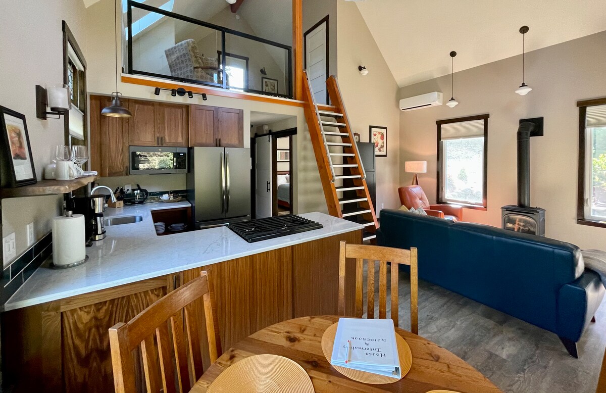 Bienvenido a Storybook Tiny home en serena Sequim, un acogedor refugio forestal, con encantadoras artesanías de madera, una cama tamaño queen, un baño privado con un nuevo inodoro con descarga, una cocina pequeña con microondas y una chimenea de propano para un ambiente acogedor. Disfruta del patio al aire libre con una chimenea, relájate en el jacuzzi de 104 grados. Observa la vida silvestre local. A poca distancia en auto de las tiendas de Sequim, rutas de senderismo y cerca del Parque Nacional Olympic, la mezcla perfecta de encanto rústico y comodidad para tu escapada.
