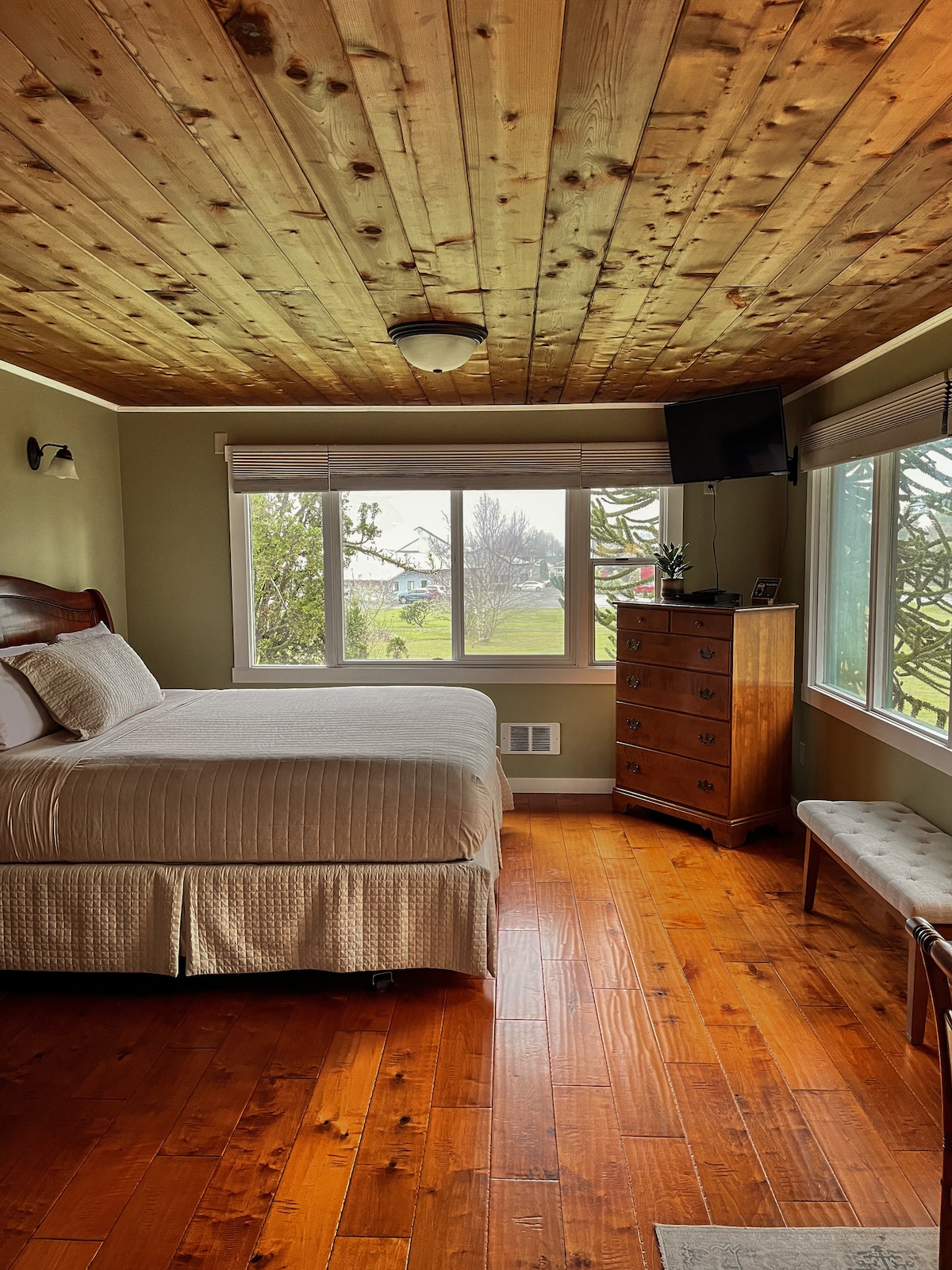 🦅 Eagle's Nest: vistas panorámicas de la bahía desde arriba Despierta con vistas panorámicas de la bahía de Dungeness desde este sereno refugio en el segundo piso. El Eagle's Nest cuenta con una cama tamaño king, ducha de lluvia y una acogedora cocina americana, perfecta para tomar café junto a la ventana mientras las águilas se elevan por encima. Disfruta de lujosas batas, wifi, TV por cable y comodidad moderna en un entorno tranquilo frente al agua.