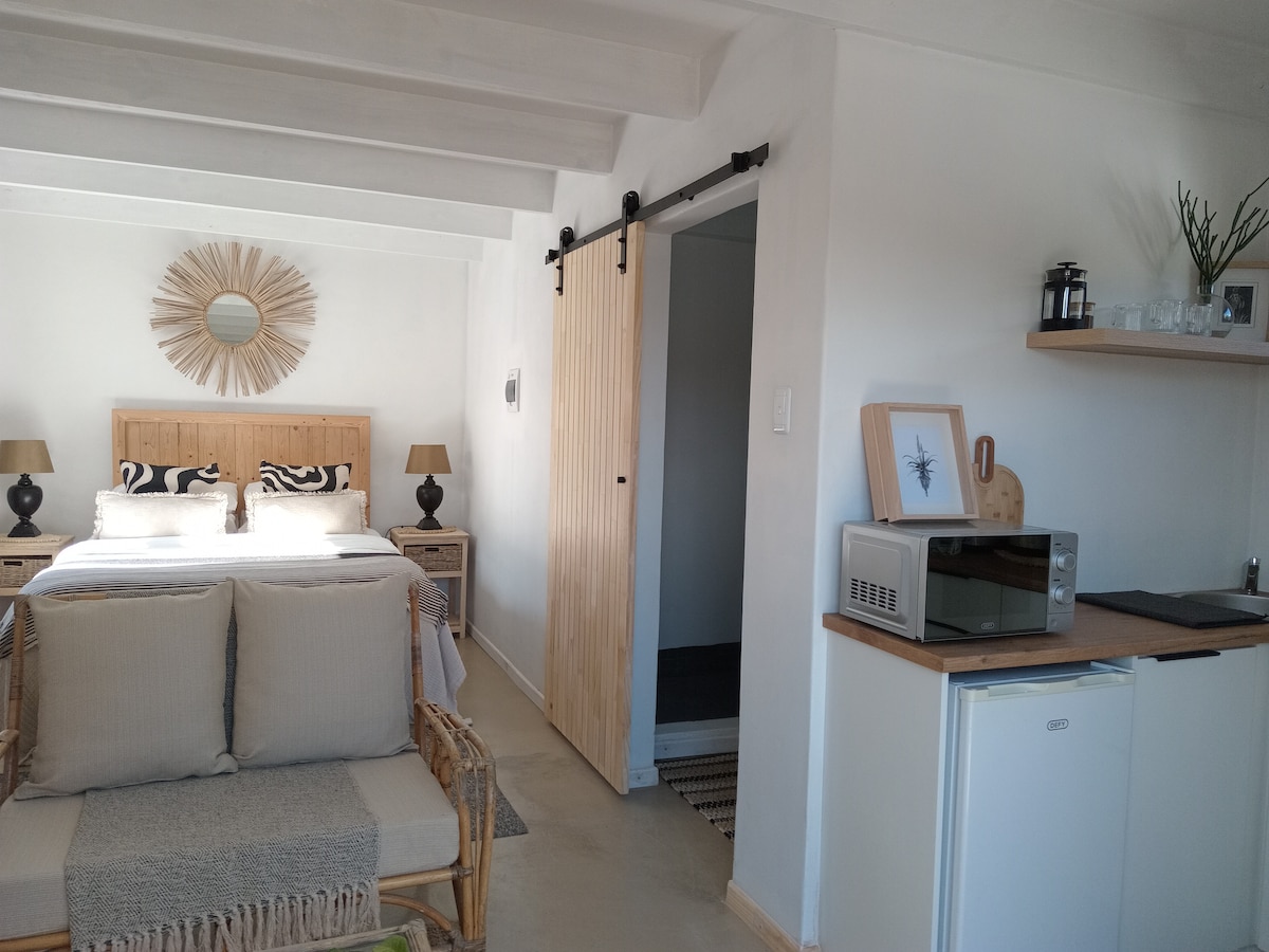 Despiértate con suaves brisas marinas y un entorno tranquilo a solo 500 metros de la playa. Ya sea que desees pasar un rato tranquilo a solas o una acogedora escapada en pareja, Aston Bay ofrece la tranquilidad que te has estado perdiendo, todo al alcance de la energía de Jeffreys Bay. Tu suite está ubicada de forma privada debajo de la casa principal, accesible por escaleras, con patio, barbacoa y vistas al jardín. Interior: cama tamaño queen, ducha en suite, cocina pequeña, aire acondicionado (ventilador durante los apagones), wifi y DStv. Reserva tu escapada tranquila hoy mismo.