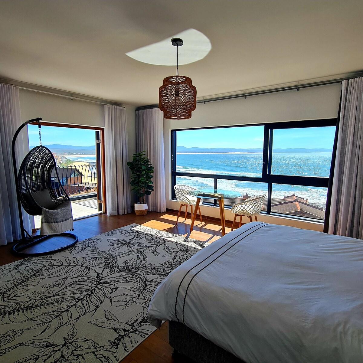 ¡Es hora de darte un capricho! Limpieza impecable, TV inteligente y wifi, aparcamiento seguro. Cambio automático para respaldar energía durante el deslastre de carga, además de una placa de gas. Justo en la playa principal de Blue Flag de Jbay, encuentra el lugar perfecto para descansar. Amplio, moderno y lujoso. 3 dormitorios, 3 baños, tamaño de la planta 280 m² con una azotea privada. Vistas panorámicas por todos lados. Electrodomésticos de última generación, nevera/congelador, máquina de hielo incorporada y filtro de agua. Camas cómodas, ropa de cama blanca de algodón y toallas suaves: pura felicidad.