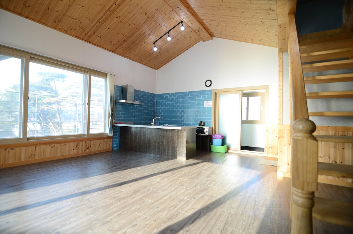 Es una casa cómoda ubicada en Gandrai Village cerca de Muchangpo Beach. Gandri Village se llamaba Gandri porque todas las personas que tenían una botella vieja o la dejaban se sentían cómodas cuando llegaban a este pueblo. El primer piso de la casa Ghandri es una casa individual que consta de un total de 45 pyeong, una amplia sala de estar de 30 pyeong, dos habitaciones y un ático de unos 15 pyeong. Es genial alojarte con tus amigos y familiares o tus padres. Por favor, ven a la ciudad y diviértete, incluso por un tiempo.