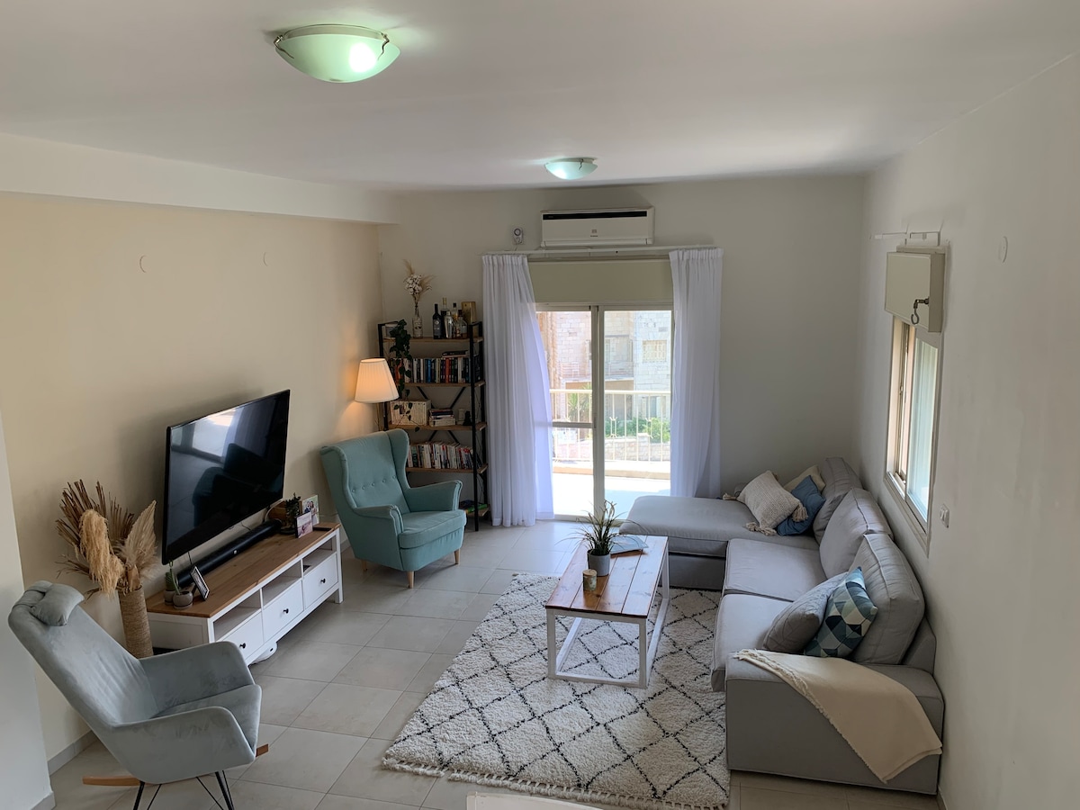 Departamento de 2,5 dormitorios totalmente equipado para 4 huéspedes ,incluye una cama doble en el dormitorio y otro sofá cama en la sala de estar. El apartamento tiene un hermoso patio cubierto y un encantador jardín. El apartamento está en la planta baja de un edificio de 2 plantas. Hay un espacio de estacionamiento privado disponible en las instalaciones. El apartamento está en un vecindario tranquilo en la ciudad de Rehovot, a 20 minutos en coche del aeropuerto Ben-Gurion y a 30 minutos de Tel-Aviv.