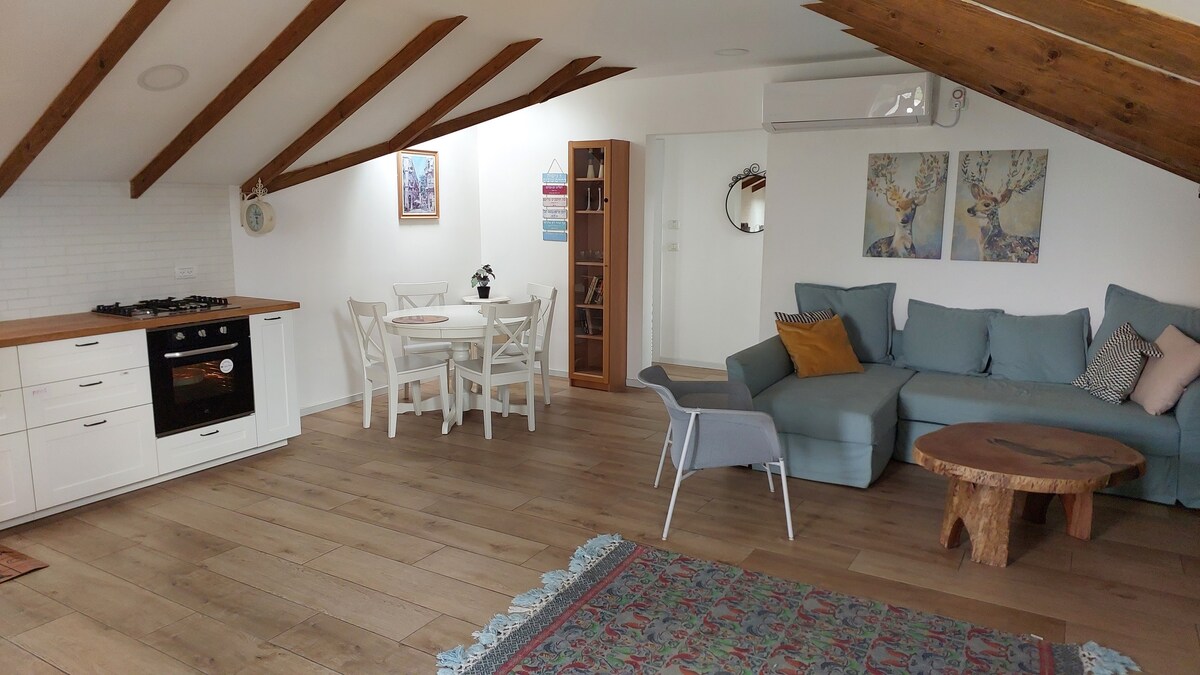 disfruta de nuestro apartamento de 2 habitaciones con impresionantes vistas contempla las montañas y los bosques de los ein karem históricos y hermosos siéntate afuera, en la gran terraza, escucha a los pájaros y sumérgete en la serenidad. el departamento está renovado con amor Las sábanas y toallas de calidad hacen que esta sea la escapada perfecta