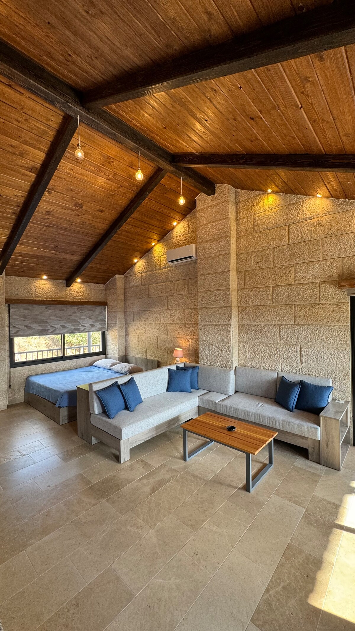 Bienvenido a nuestra cálida y familiar Villa, diseñada con el espíritu de privacidad, hospitalidad y la encantadora simplicidad de la belleza rural del sur del Líbano. ParadiseHeaven combina la elegancia informal con la funcionalidad práctica, donde los toques del patrimonio local se encuentran con elementos modernos suaves. El ambiente aquí es tranquilo y acogedor; las ventanas dan a un pequeño jardín de hierbas lleno de tomillo y menta, donde puedes disfrutar de la preparación de café o té árabe mientras la brisa de la montaña fluye suavemente a través del espacio.