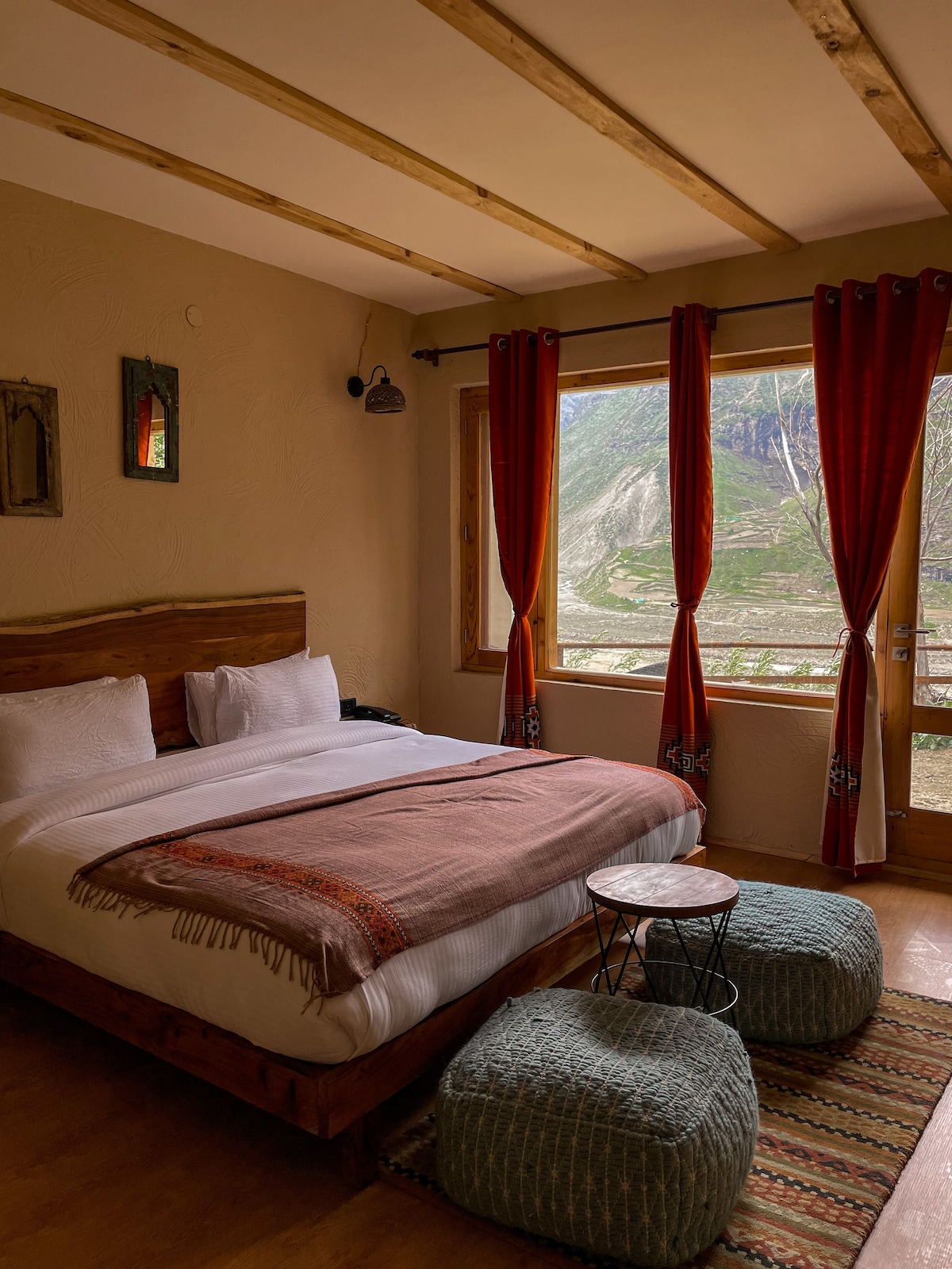 Situated amidst the majestic Himalayan mountains, our cozy studio offers panoramic views that will leave you in awe. Relax in comfort with a plush King-size bed, a fully equipped kitchenette, and a modern bathroom. With easy access shops, restaurants, and river stream, our studio provides the perfect base for exploring the natural beauty and rich culture of Lahaul Valley. Book your stay now for an unforgettable mountain retreat.