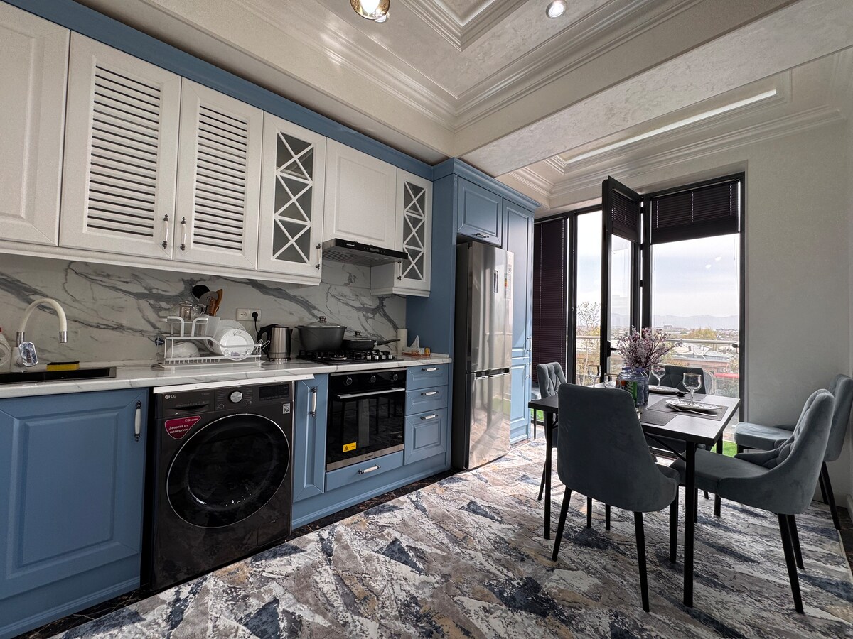 Bienvenido a nuestro elegante departamento compacto de 1 dormitorio ubicado en el corazón de Samarcanda. Este moderno apartamento está cuidadosamente diseñado para ofrecer comodidad y conveniencia a la hora de explorar la ciudad. La ubicación es perfecta para descubrir Samarcanda a pie: el monumento Amir Temur está a solo 2 minutos a pie, el Mausoleo Gur-e-Amir se puede llegar en unos 5 minutos y la famosa Plaza Registan está a solo 10 minutos a pie del apartamento.