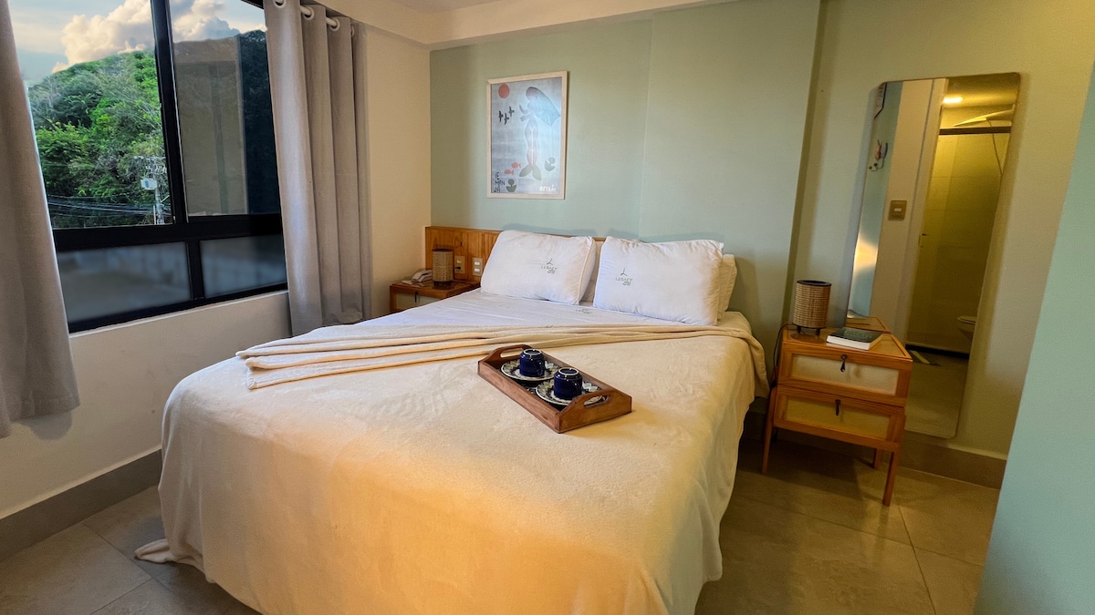 Apartamento con entrada independiente con dormitorio en suite, aire acondicionado, minibar, TV y cocina (con estufa y mesa). Tiene capacidad para tres personas con una piscina y una hamaca para descansar. Ubicación privilegiada a solo 200 metros de la playa de Bessa y cerca de mercados, bancos y panaderías. Ven y disfruta del mejor verano en el noreste en João Pessoa.🏖️