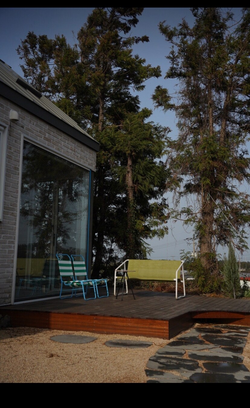푸른 숲이 있는곳 조천읍 선흘에 위치한 전원주택 별채 입니다, 동백동산과 거문오름에 인접하고 밑으로는 함덕 해수욕장이 있는 조용한 전원 마을 입니다, 한라산이 조망되며 숙소 인근엔 도보 4분 거리에 유명한 로컬푸드 식당과 브런치 카페들, 편의점, bus 정류장이 있으며, 1시간 이상 걸을수 있는 곶자왈 산책로가 있습니다, 침실은 복층으로 안락하며 편백향이 가득하여 편히 쉴수 있습니다.