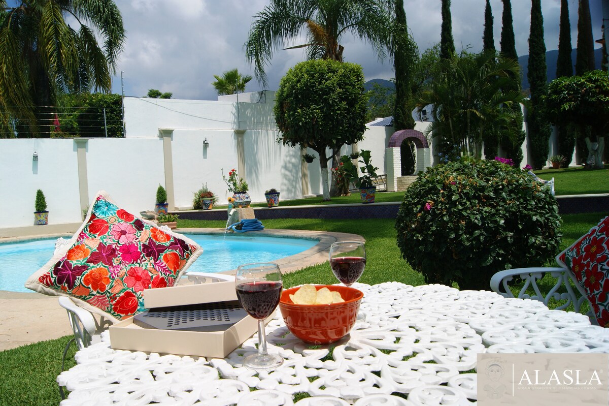 Ofrezco para ti una Romántica casa espaciosa, bien ubicada, para que te relajes con toda la familia en este alojamiento donde la tranquilidad se respira. Disfrutarás de hermosas vistas a la montaña, disfrutando un clima excepcional y donde podrás hacer uso de unas instalaciones y amenidades inmejorables. El costo de la reservación incluye Wifi y servicios de luz, agua y gas.