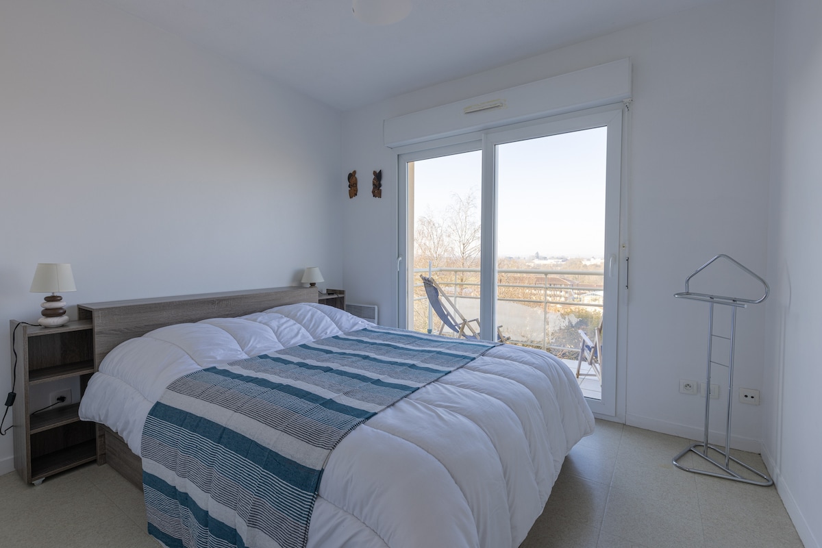 Hermoso apartamento luminoso reformado en una residencia tranquila y agradable a 2 pasos de las Antillas de Jonzac. Equipamiento de gran confort, ropa de cama de 140, sofá cama, lavavajillas, ablandador de agua, ducha a ras de suelo... Balcón con una gran vista de los viñedos y el castillo del siglo XVIII. Ideal para estadía, vacaciones o fines de semana de ocio y relajación en Jonzac. Estacionamiento privado con puerta eléctrica al pie del edificio. English spoken. Alquiler de ropa de cama bajo petición con suplemento.