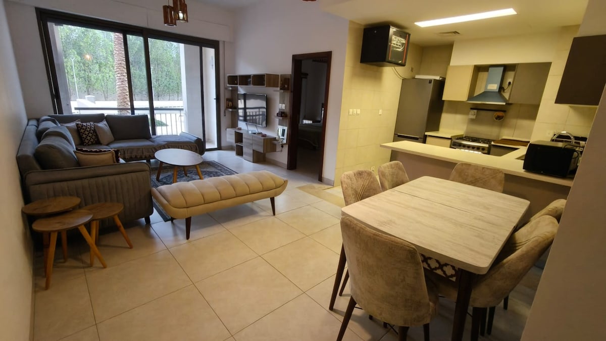 Un moderno y elegante apartamento de un dormitorio en Ayla Oasis con muebles de lujo nuevos con todos los electrodomésticos. Crea hermosos recuerdos y diviértete con toda la familia en este lugar elegante, único, familiar y amigable. Se adapta a 4 personas. Estacionamiento gratuito con servicios de seguridad las 24 horas, 7 Zona de juegos para niños con acceso gratuito a la playa Hyatt Regency A solo 10 minutos de la pared del pueblo deportivo de Ayla, donde puedes disfrutar de excelentes restaurantes, vida nocturna y experiencias de compras.