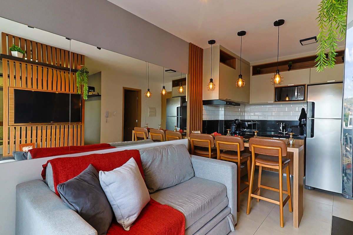 El apartamento es ideal para una estancia cómoda en Juiz de Fora. Ubicado en el Edificio Rossi 360, que se encuentra junto al Centro Comercial Independência y también cerca de la UFJF, Centro Comercial Spazzio, panaderías, restaurantes, panadería sin gluten, salón de belleza, Facultades CES JF, supermercado Bretas, Club Cascatinha, parada de autobús municipal e interurbano en la puerta. El condominio está equipado con piscina, gimnasio, sala de estudio y sauna. Cuenta con wifi, SMARTV y garaje para un coche.