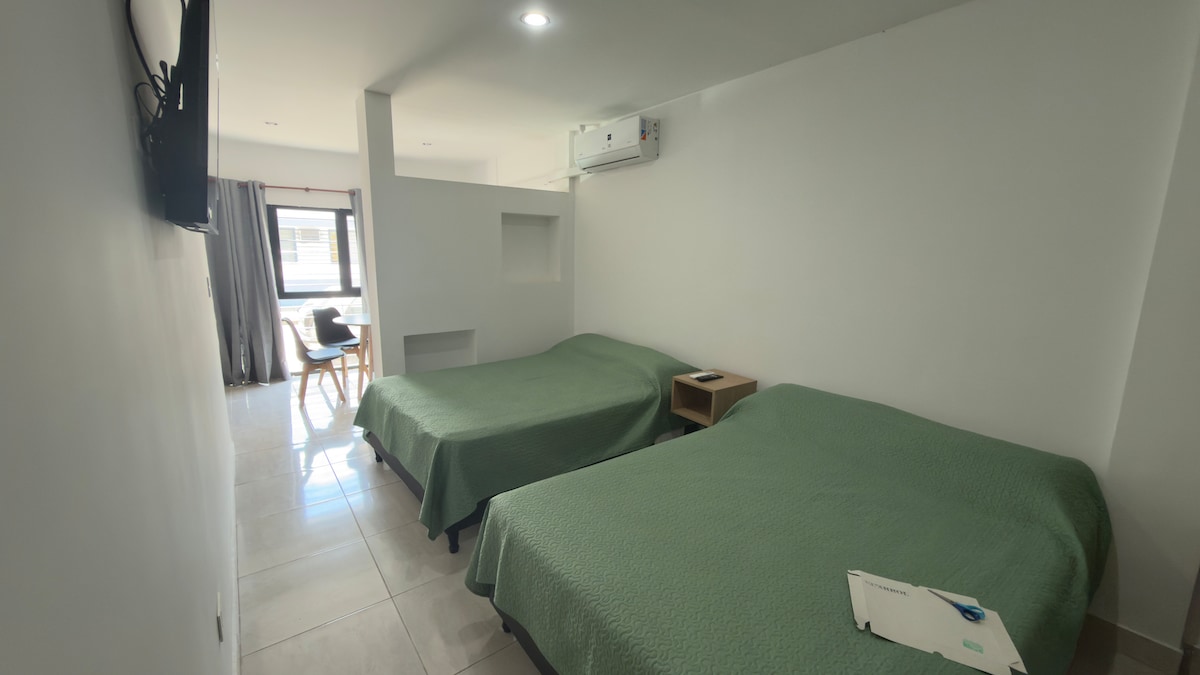 ¡Habitación privada tipo apart-hotel en pleno centro de Jujuy! Disfrutá la comodidad de tener tu baño privado, A/C y kitchenette equipada (frigobar, pava eléct., vajilla). La hab. tiene TV, ropa de cama y toallas. Incluye limpieza diaria. ¡Contamos con estacionamiento privado (autos/camionetas)! Ubicación ideal a 500mts: caminá a Plaza Belgrano y Parque Xibi Xibi. **Importante: El servicio no incluye desayuno.**