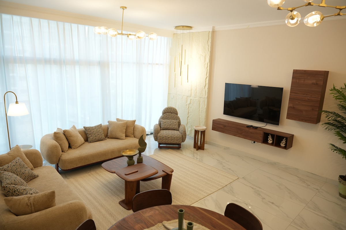 Step into elegance at our 1-bedroom Dubai Hills apartment. Designed with a fusion of contemporary flair and comfort, it boasts a spacious living area, a cozy bedroom, and a well-appointed kitchen. Enjoy panoramic views from the balcony and unwind in the luxurious bathroom. Located in a prime spot, it offers easy access to Dubai's attractions. Ideal for those craving sophistication and convenience. Book now and indulge in a memorable stay!