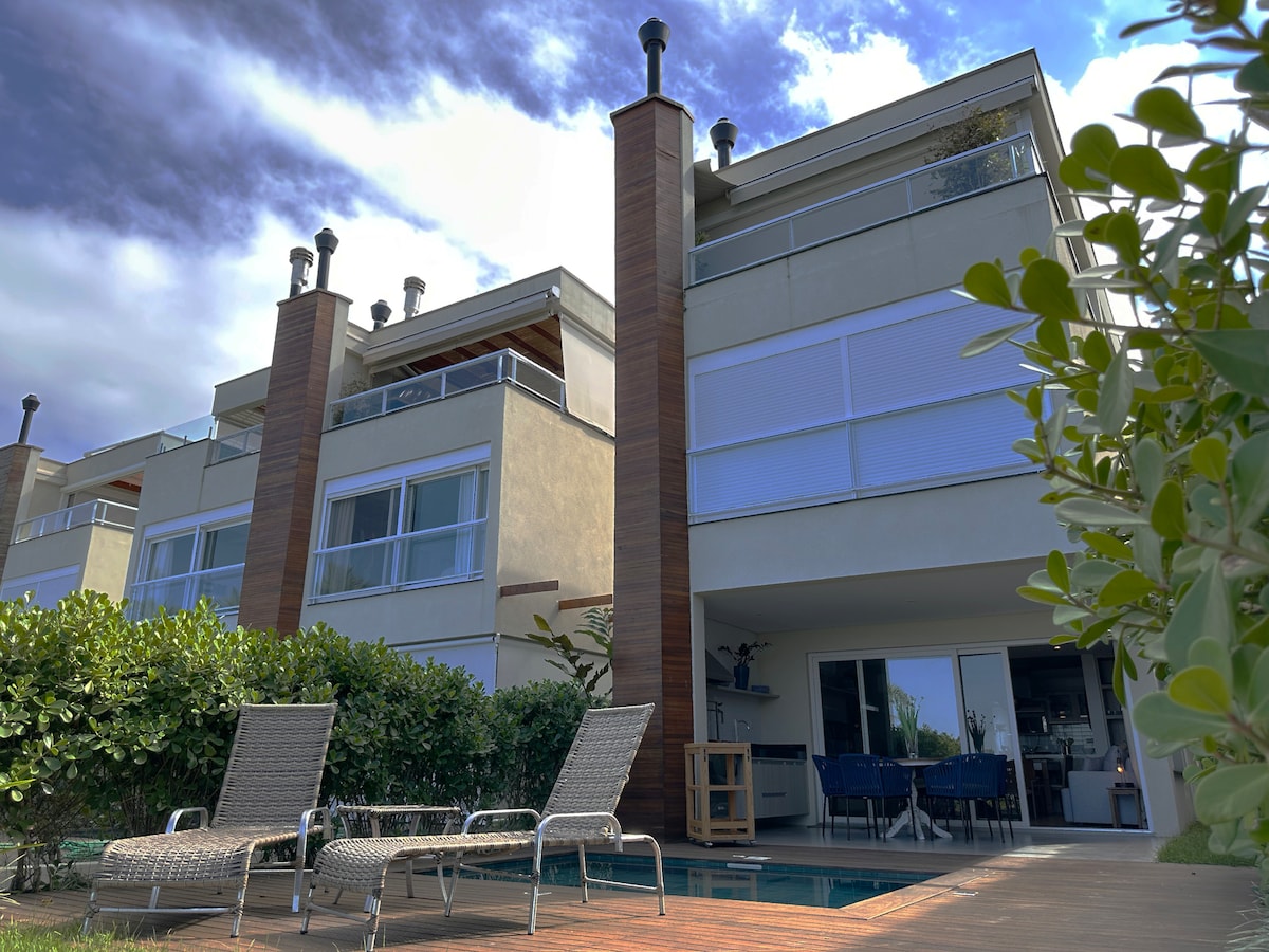 Acogedora y moderna casa de playa, 220 m2, en condominio con servicio de seguridad las 24 horas. Ubicación perfecta: a 150 metros de la playa y a 500 metros del centro de la ciudad. ¡No se necesita coche! El condominio ofrece servicio gratuito de playa y tiene una piscina climatizada. 4 habitaciones con baño privado (cada una con baño propio), dos terrazas privadas con hermosas vistas, cocina abierta, increíble terraza con parrilla al aire libre rodeada de vegetación nativa. Todas las habitaciones tienen aire acondicionado, incluida la sala de estar y el comedor. Internet de alta velocidad disponible.