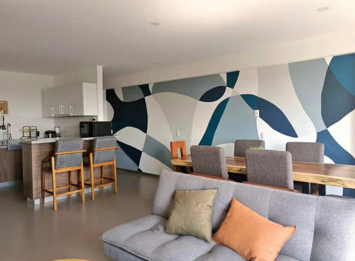 ¡Bienvenido a tu hogar lejos de casa! En el corazón de Juriquilla encontrarás este moderno departamento diseñado para viajeros de negocios, familias o amigos que buscan tranquilidad, conectividad y estilo. A pocos minutos de Antea, parques industriales del norte de Querétaro, restaurantes, principales vías de acceso, a 35 min. del centro de San Miguel de Allende, Guanajuato. Disfruta de un área de trabajo cómoda y relajada, Ideal para estancias cortas o largas por sus increíbles amenidades!