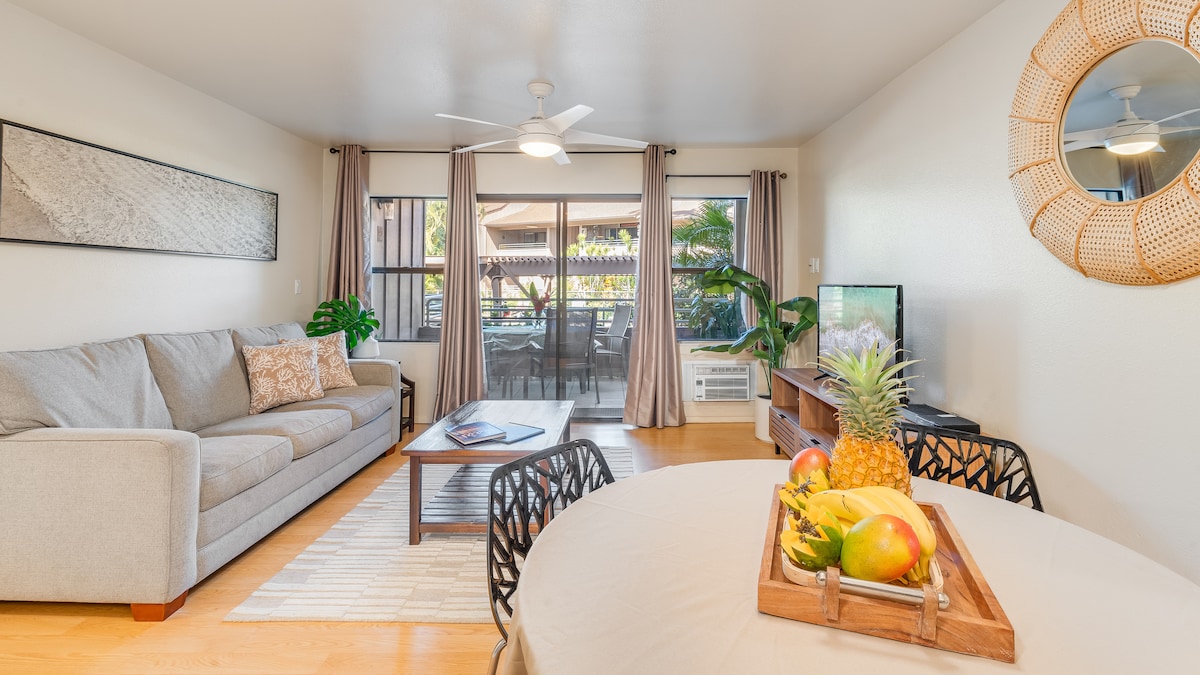 ¡Da la bienvenida a nuestro condominio recién remodelado situado en el centro de South Kihei! Somos una propiedad con licencia en una comunidad zonificada de hoteles, no afectada por la prohibición de alquileres de corta duración aprobada por el Consejo de Maui en el proyecto de ley 9. ¡Reserva con confianza! Esperamos salir de la cómoda cama tamaño king y cargar nuestro carrito de playa con algunas sillas y una nevera para un corto paseo a la playa. Más tarde, disfruta de un tiempo al aire libre a la sombra en nuestro hermoso espacio privado en el lanai. Paz, relajación. ¡Te va a encantar Maui!