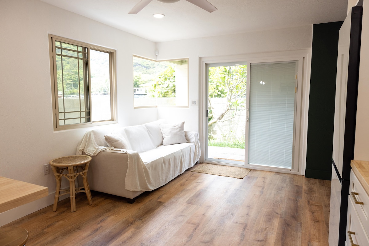 Relájate y desconecta en este alojamiento tranquilo y elegante. Situado en la relajante costa noreste de Oahu, estás a pocos minutos a pie de una hermosa y poco concurrida playa de arena. O conduce 15 minutos por la carretera hasta las mundialmente famosas playas de surf de la costa norte. Si quieres quedarte un rato, tampoco hay problema. Completamente renovado en 2022, este apartamento de un dormitorio tiene un toque moderno y ligero que hace que sea un placer pasar el rato.