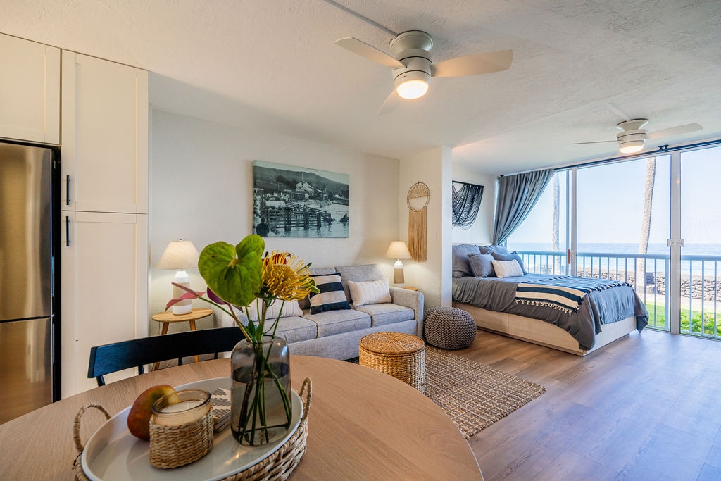 ¡La mejor unidad en el popular Sea Village de Kailua-Kona y una de las únicas con aire acondicionado! Cautivadoras vistas al mar, brisas, vistas y sonidos tropicales te dan la bienvenida en esta unidad de fácil acceso en la planta baja. Comienza el día en el lanai privado observando a los delfines giradores y termínalo con una copa de vino contemplando la puesta de sol sobre el océano. Este apartamento totalmente actualizado y llave en mano cuenta con un concepto de vida abierta y está a 5 minutos del centro de la ciudad. ¡Una base ideal para que una persona, una pareja o una familia pequeña exploren la isla grande!