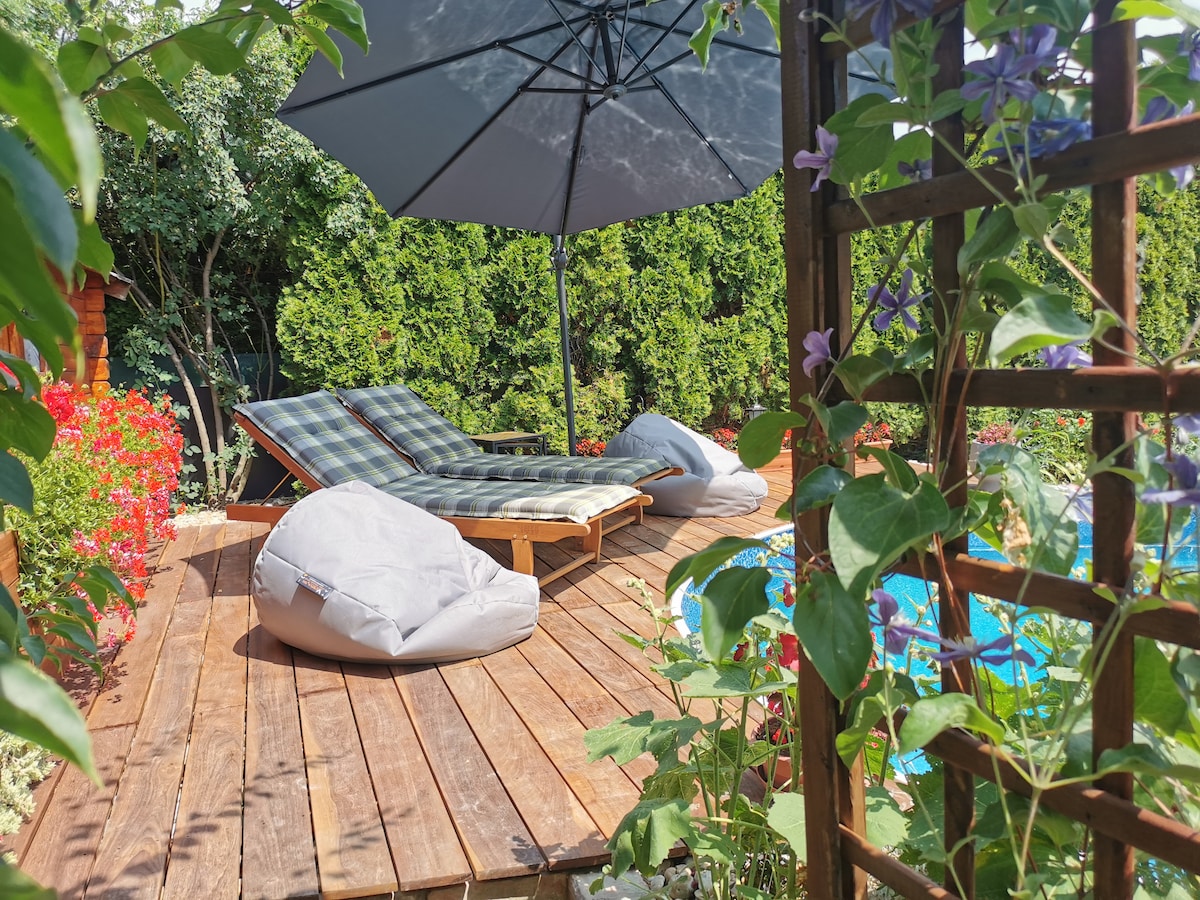 Una acogedora casa de jardín privada con terraza en zona tranquila. Estacionamiento gratuito. Cerca del centro histórico de la ciudad, a solo 15 minutos a pie. Justo al lado del Empire Tennis Center Trnava y a 5 minutos a pie hasta Relax Aqua y Spa Trnava. También cerca de las muchas cafeterías y restaurantes hermosos del centro de la ciudad. Comestibles justo detrás de la esquina: Tesco express. Si eres fan de la naturaleza y tienes un auto, a solo 30 minutos en coche de castillos y bosques.