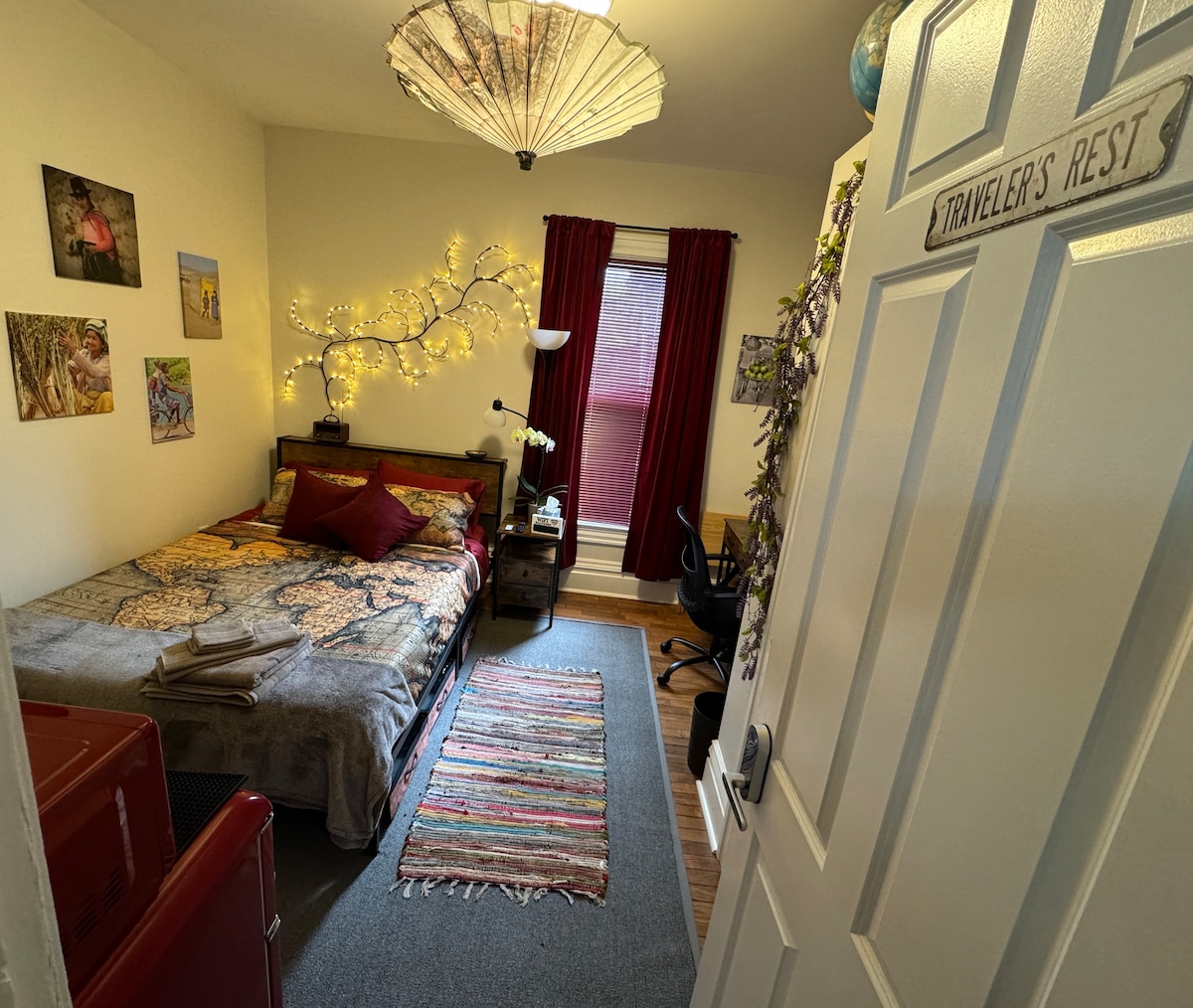 ¡Bienvenido a mi espacio acogedor favorito! Este pequeño apartamento con encanto es perfecto para parejas o viajeros solos. Ubicado en una casa histórica, este apartamento de segundo nivel está a solo 2 millas (y menos) del hospital Bronson, la escuela de medicina WMU, el centro comercial Kalamazoo y restaurantes como Bells Brewery. También está a poca distancia a pie de K College. Lo suficientemente cerca como para disfrutar de toda la diversión del centro de la ciudad, pero lo suficientemente lejos como para relajarse después de un largo día. ¡Tu hogar lejos de casa 😊 está deseando hospedarte!