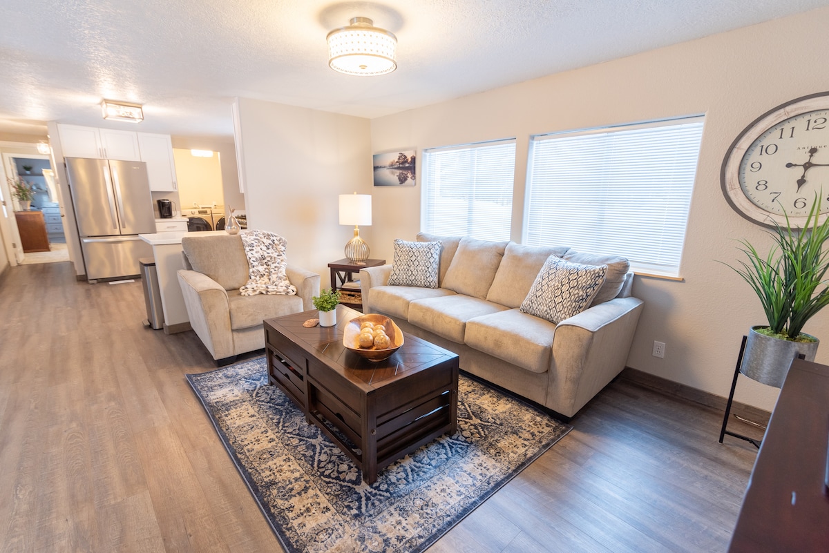 Situado en el corazón de Soldotna y a 1 milla del río Kenai, el alojamiento tiene un concepto abierto y está recientemente remodelado con 3 dormitorios más un cuarto dormitorio/oficina. Los muebles, electrodomésticos y accesorios son nuevos y modernos. La vivienda dispone de wifi y un escritorio de trabajo para trabajar a distancia. La casa está a poca distancia a pie de tiendas y restaurantes, a media manzana del hospital y a media milla de la escuela secundaria Soldotna. La casa y las sábanas se limpian profesionalmente antes y después de cada estancia. #593800401