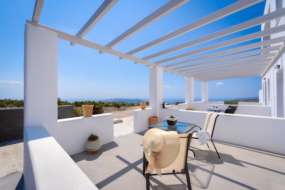 Las villas de la tía se encuentran en Vourvoulos, uno de los pueblos más pequeños de Santorini, a solo 600 metros de Imerovigli y a 3 km de la capital de la isla, Fira. Esta villa de nueva construcción tiene todo lo necesario para que tus vacaciones sean inolvidables. Lo que hace que esta villa sea única, son la bañera de hidromasaje en la terraza, combinada con sus impresionantes vistas al mar al lado este de la isla y la arquitectura cicládica, junto con una decoración de estilo moderno.
