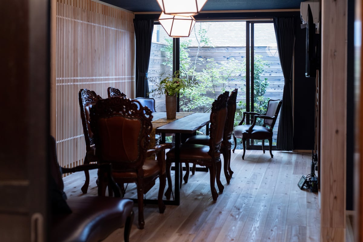 TABITABI Shukaku es una casa de estilo tradicional construida en la era Taisho que ha sido remodelada con un estilo moderno. La habitación de dos pisos tiene una superficie de 100 metros cuadrados. Las vigas de más de 100 años de antigüedad que recorren los altos techos y los muebles bellamente decorados son vestigios de cuando la casa era una carpintería. El espacio es único, con una decoración moderna y armoniosa, donde podrás disfrutar de una experiencia de alojamiento típica de Kioto, donde conviven lo nuevo y lo antiguo. En la primera planta hay un jardín privado y un baño al aire libre. En la segunda planta también hay una bañera de hidromasaje de última generación. La ropa de cama está compuesta por dos camas Simmons, las mejores de Estados Unidos. La habitación japonesa está decorada con un diseño de «remolino» creado conjuntamente por un artesano de papel japonés de Kioto con más de 100 años de historia y el mejor artesano de muebles de Japón, y es una fusión de la transmisión de luz y el diseño único de las persianas. El cojín de la habitación japonesa es "elegante y cómodo para sentarse en el suelo durante mucho tiempo".El tema fue desarrollado por el Sr. Takahoka de Konaka, quien colocó el "ojami zabuton". En la tienda de Rokuchu Takahata, fundada hace 100 años, todos los procesos se siguen realizando a mano. Podrá experimentar la comodidad que nace de la artesanía que las máquinas no pueden realizar, como el moldeado de kamaboko y el doblado de esquinas con técnicas tradicionales de artesanía.