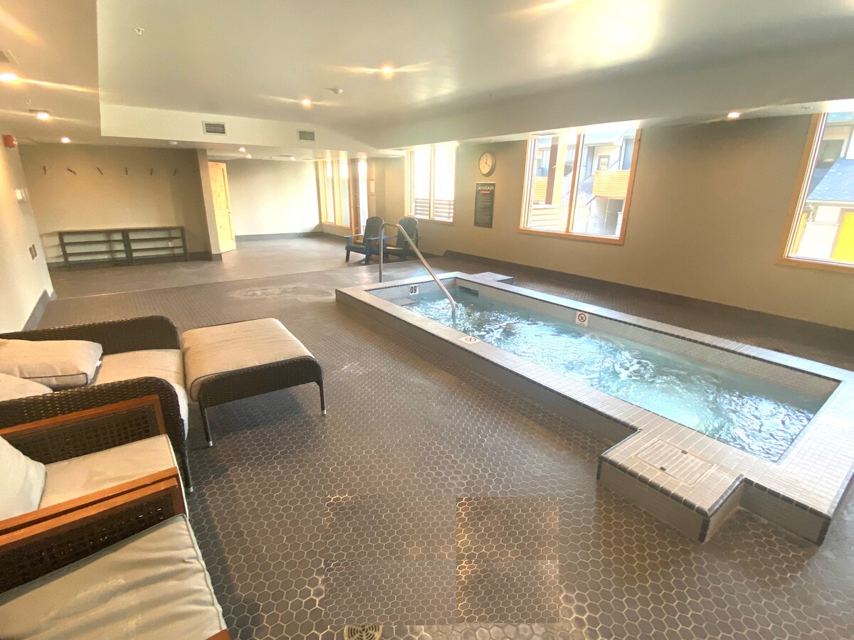 *Parkade cerrado a mediados de abril y finales de mayo; estacionamiento en la calle solamente.* Nuestro hermoso condominio se ubica en uno de los mejores resorts de Canmore con acceso durante todo el año a la bañera de hidromasaje y la piscina climatizada. Estamos a 20 minutos a pie del centro de Canmore con rutas de senderismo y ciclismo cercanas. ¿Buscas un hogar lejos de casa? Nuestro condominio está completamente abastecido para cocinar todas tus comidas, con una cómoda cama tamaño king, acceso al patio e impresionantes vistas a la piscina/jacuzzi. ¡Quédate un rato, te encantará!