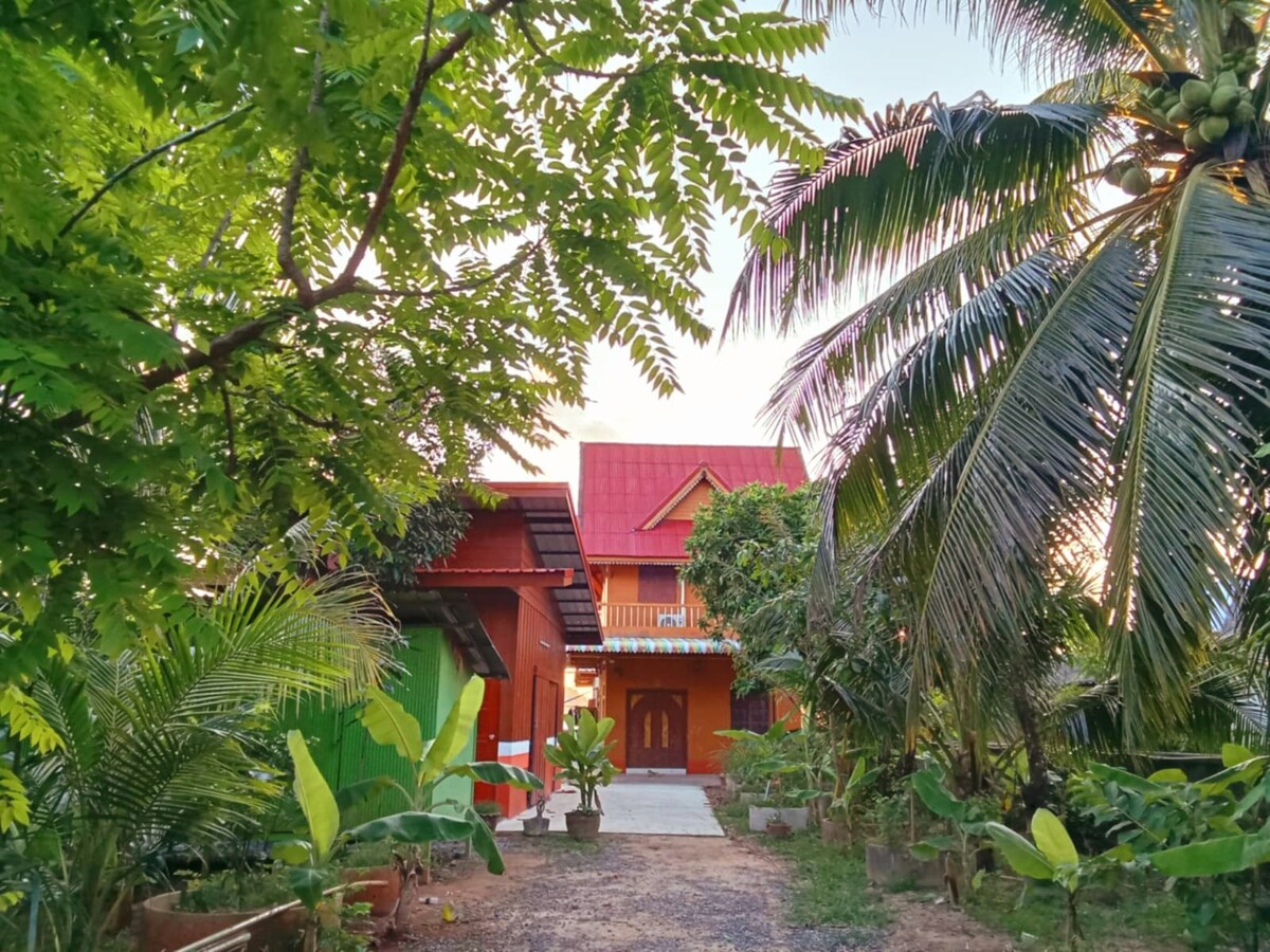 ที่พักสไตล์บ้านในสวนล้อมรอบไปด้วยธรรมชาติสวนยางและสวนผลไม้มีรถรับส่งคิดค่าบริการตามระยะทาง