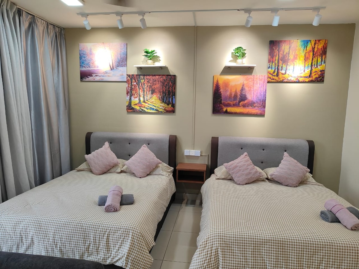 Disfruta de la sencillez de este alojamiento tranquilo y céntrico. Nueva habitación tipo estudio amueblada en Trefoil Setia Alam. Estamos ubicados en Setia Alam, Shah Alam, justo al lado del centro comercial Setia City y del centro de convenciones Setia City (SCCC). A muy poca distancia del NIH, Top Glove HQ y Sunsuria Forum. El espacio Distribución de las camas para 2 huéspedes: - Cama tamaño queen x 1 - Sofá cama x 1 Lo que ofrecemos: - Proyector inteligente de 150 pulgadas (preparado para Netflix, YouTube, etc.) - Wifi de 500 Mbps.