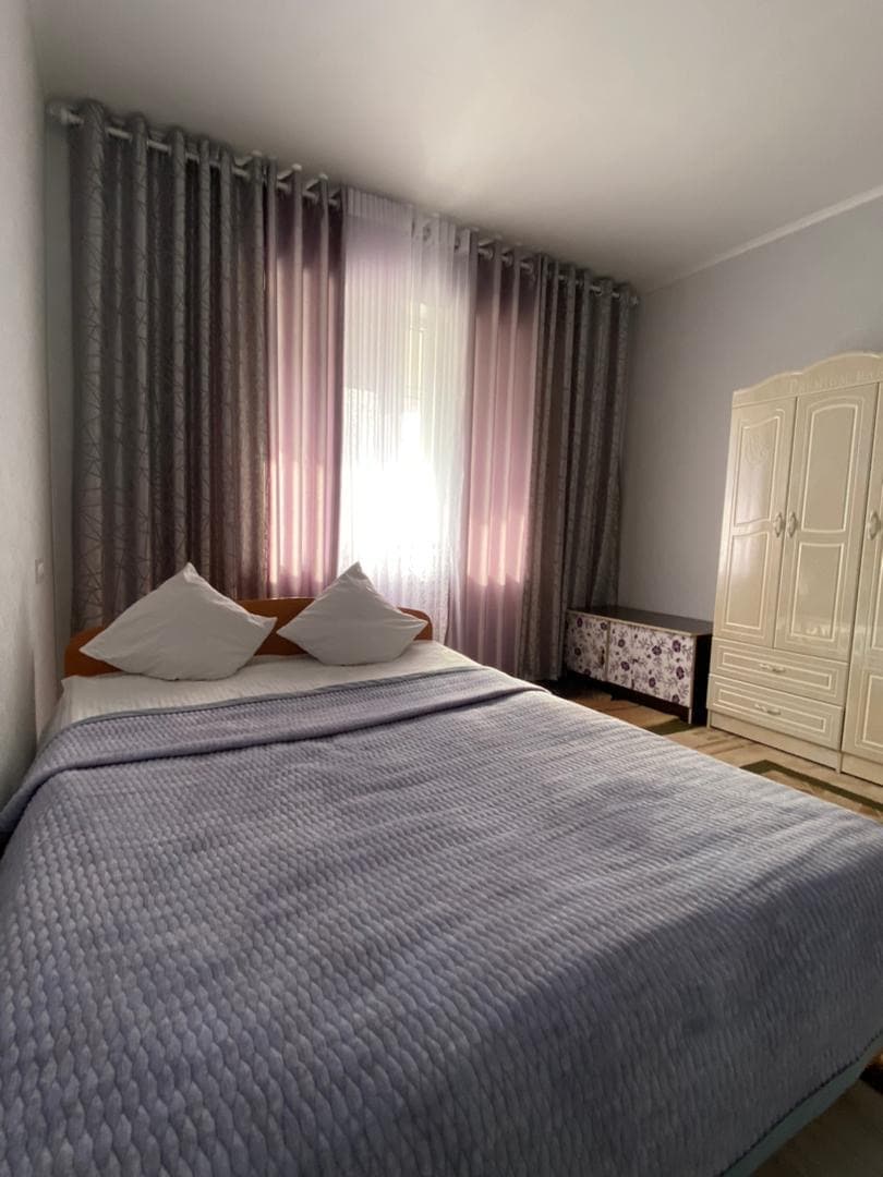 Acogedor apartamento cerca del centro de la ciudad. El apartamento tiene todo lo necesario para una estancia cómoda, trabajar y cocinar. Junto a la parada de goBus desde Bishkek. Conveniente si llegas en autobús. A poca distancia a pie de supermercados y cafeterías (Dastorkon). Este es un apartamento de una habitación en el segundo piso con cocina y ducha separadas. Estaré encantado de responder a todas tus preguntas y ayudarte si necesitas saber algo sobre la ciudad. Para aquellos que quieran juegos de mesa y libros. Puedes fumar en el balcón.