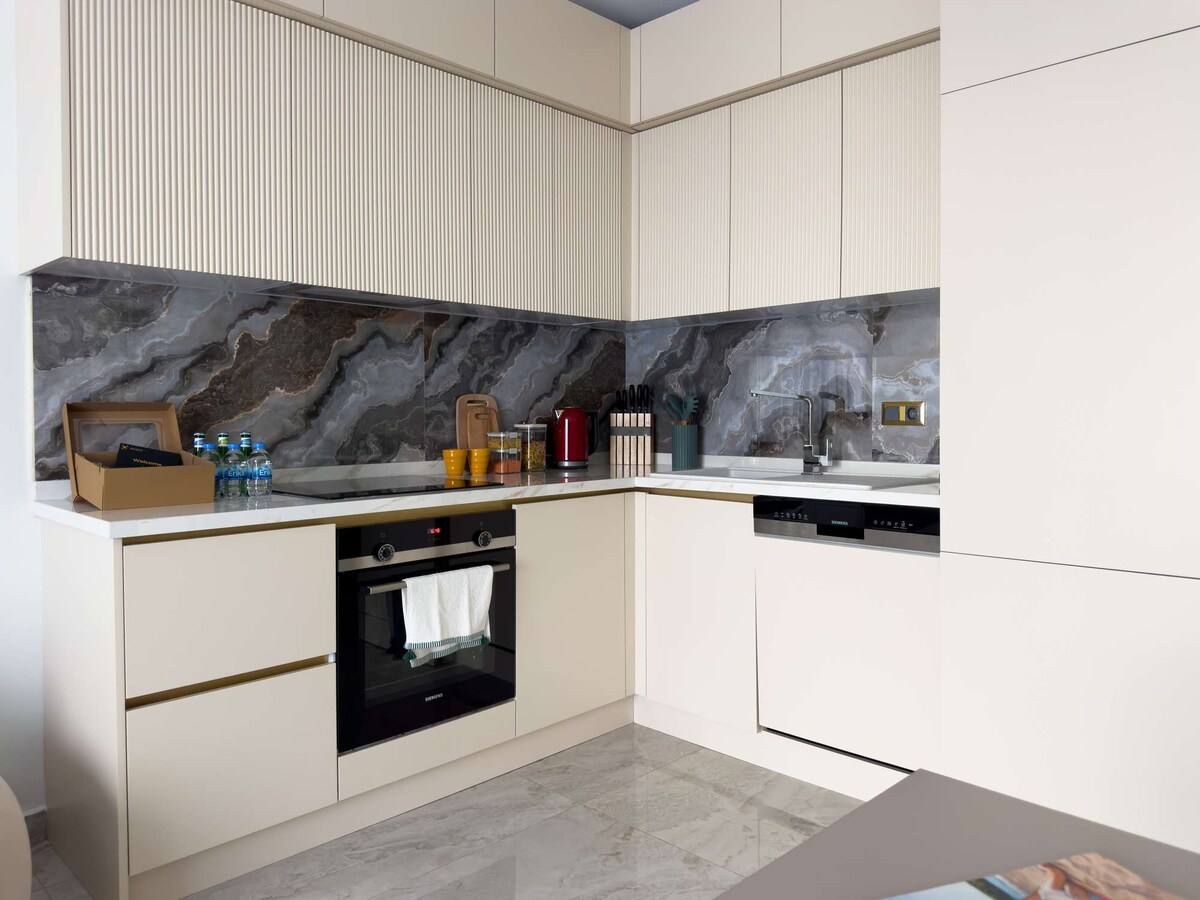 Este espacio único tiene su propio estilo. El complejo más lujoso en la primera línea del mar en Mahmutlar (Alanya). Un elegante complejo nuevo con una infraestructura hotelera de 5 estrellas. Una vista panorámica desde el piso 10 del Mediterráneo. Restaurantes, bancos, bazar y mucho más están a poca distancia a pie. Departamento elegante y limpio con todo lo que necesitas para una estadía cómoda.