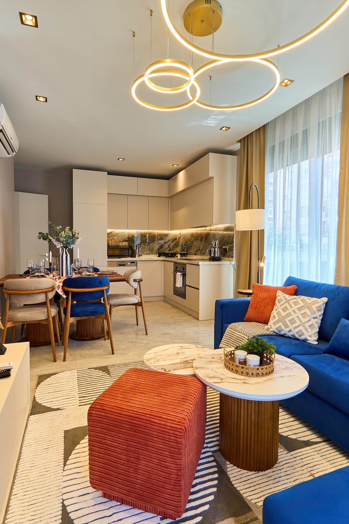 Уютная квартира 1+1, 60 м², с современным дизайном и всем необходимым для жизни. Расположена в комплексе с инфраструктурой уровня 5★: круглосуточная охрана, крытая и открытая парковка, караоке, кинозал, PlayStation-комната, хамам, сауна, бассейны. Всё, что только можно представить для отдыха и комфорта, доступно в вашем распоряжении. В квартире — полный набор удобств по самым высоким стандартам.