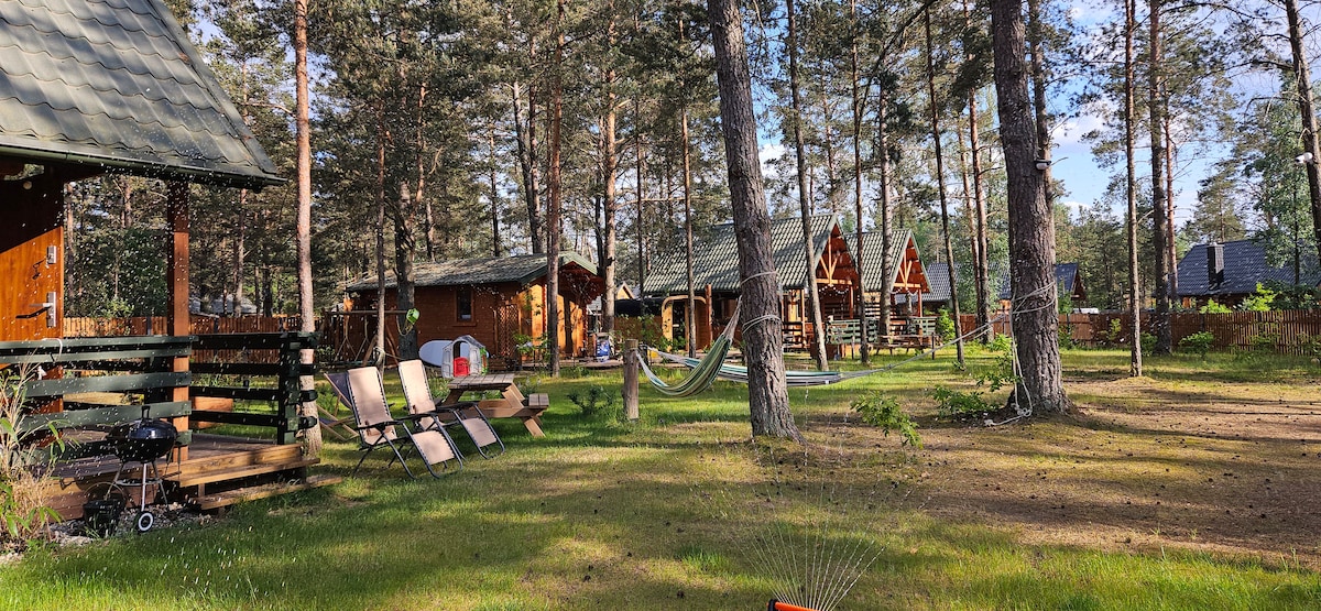Una casa de campo estilo cabaña en un jardín vallado, grande y arbolado. Casi 1000 m2 de vegetación lo hacen totalmente privado. La zona es tranquila. Tres hermosos lagos grandes a 500-700 m Los huéspedes pueden contar con un verdadero descanso del ajetreo, el fuego en la chimenea, escuchar el sonido de los árboles, alardear de ranas y pájaros cantando. Aquí recuperarás el aliento en un lugar seguro en el seno de la naturaleza, en el corazón de la Pomerania casubia.