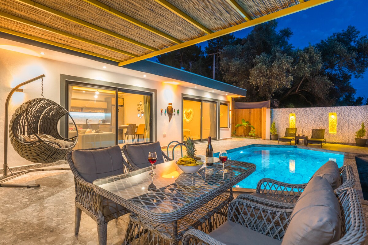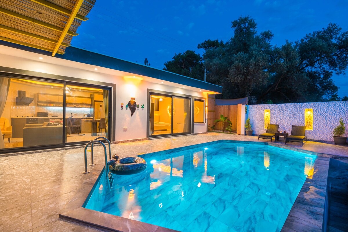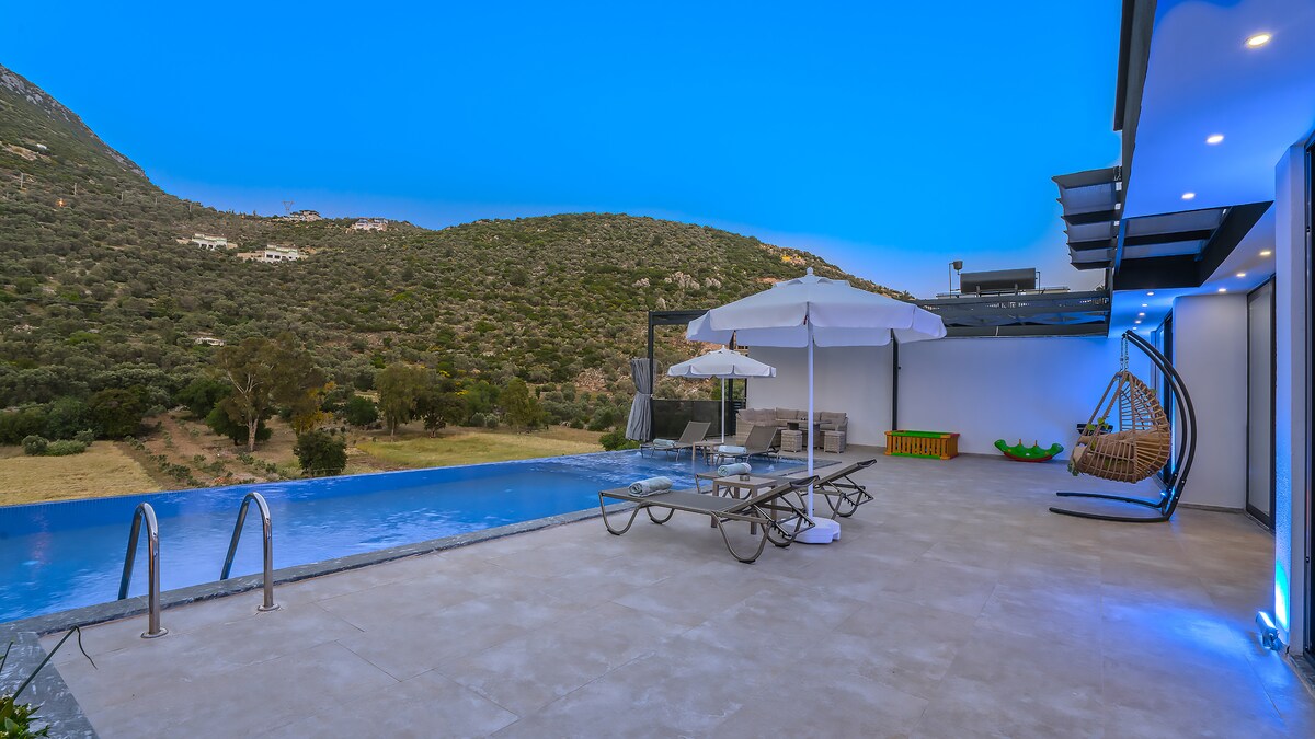 Nuestra lujosa y pintoresca villa de alquiler vacacional, que se completó en julio de 2022, es una villa ideal para nuestras parejas de luna de miel y familias pequeñas. Nuestra villa, que tiene capacidad para 5 personas, está a 5 minutos del centro de Kalkan en coche. El transporte desde nuestra villa a la playa de Kaputaş está a 10 minutos en coche de la playa de Patara, a 20 minutos del centro de Kas, a 25 minutos del centro de Kas. Nuestra villa de alquiler está rodeada de vallas y es adecuada para familias conservadoras. Ofrecemos la oportunidad a nuestros valiosos clientes con la posibilidad de un garaje cerrado