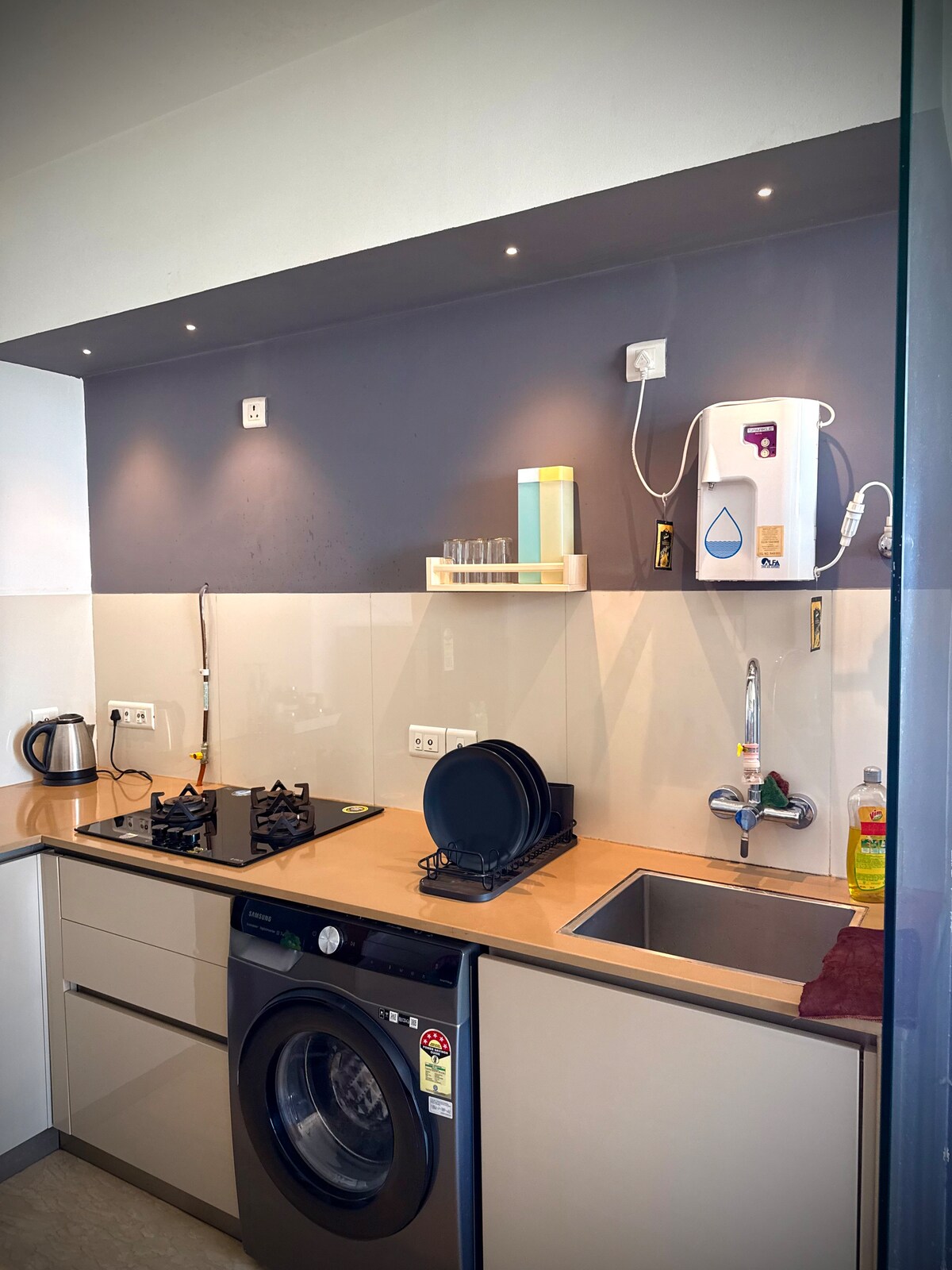 Estudio de lujo con un interior acogedor en la urbanización Hiranandani, con impresionantes vistas al arroyo y a la montaña.Prestaciones • Se admiten parejas • Cama tamaño queen con sábanas y almohadas de lujo • TV inteligente, wifi de alta velocidad y aire acondicionado. • Cocina americana totalmente equipada con nevera, hervidor y utensilios. • Baño moderno con grifería de primera calidad y agua caliente. • Balcón privado con vista panorámica • Seguridad 24/7, ascensores y acceso seguro. Ideal para viajeros solitarios, parejas, huéspedes de negocios o familias pequeñas.