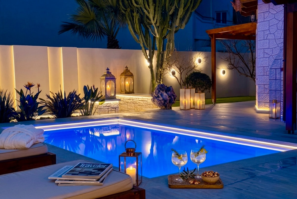 Una villa de lujo con piscina privada climatizada ubicada a solo 200 metros de las playas mejor valoradas más cercanas y de las principales atracciones del centro vacacional. Debido a su diseño moderno y único, su interior espacioso y lujoso y su exterior cómodo y relajante, esta villa funciona de acuerdo con altos estándares de alojamiento y está configurada para satisfacer las más altas expectativas de cada huésped.