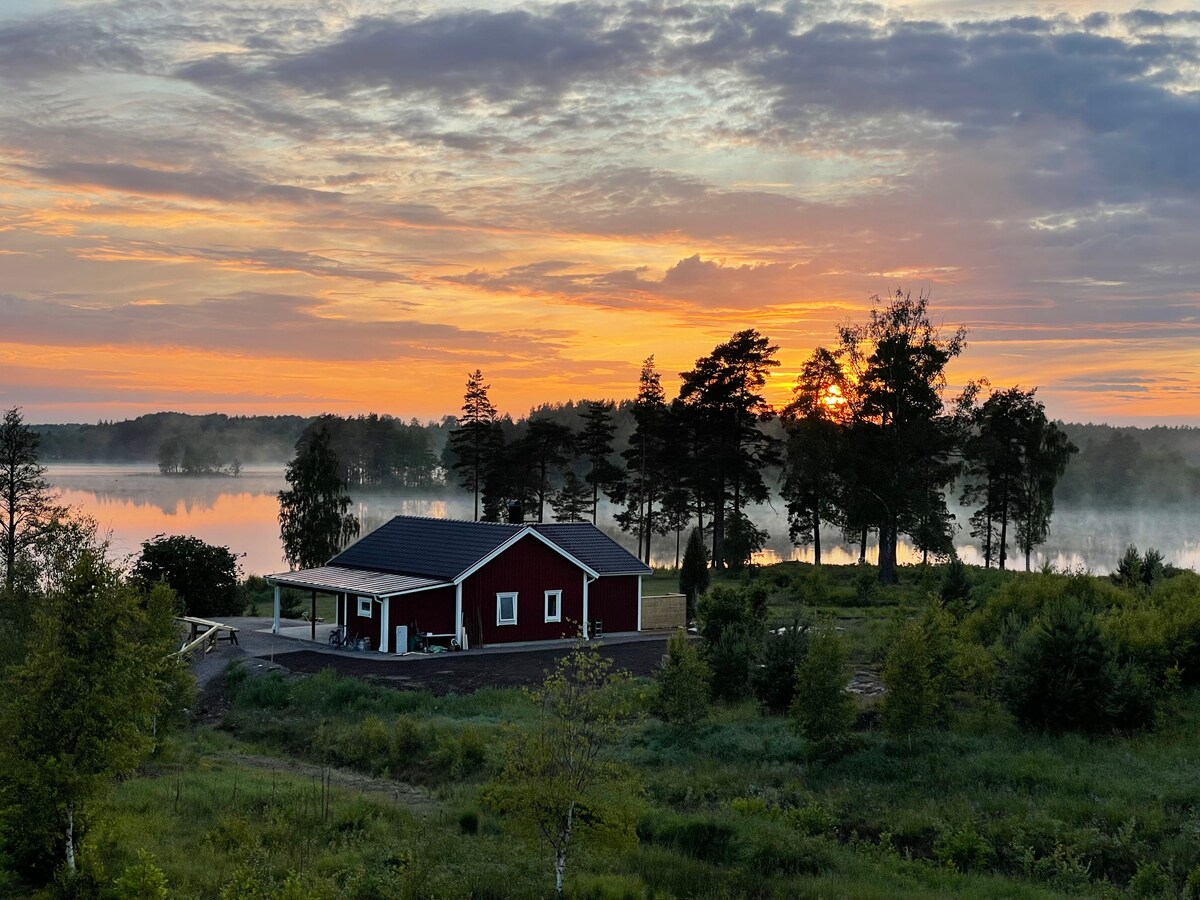 Relájate en esta acogedora casa junto al lago en nuestro pequeño Sjöstuga. Disfruta del patio orientado al sur, donde encontrarás una mesa y sillas, tumbonas ajustables y un cómodo sofá esquinero. Puedes usar el muelle de natación, donde hay una escalera para nadar. Hay un bote de remos disponible para su uso. La carretera y el ferrocarril están cerca, pero no causan molestias significativas; sin embargo, tampoco es un lugar completamente tranquilo durante el día. La casa de campo está ubicada en una parcela ajardinada, pero sigue estando separada del edificio principal, donde viven dos jubilados y un perro. ¡Te damos la bienvenida a este paraíso rural!