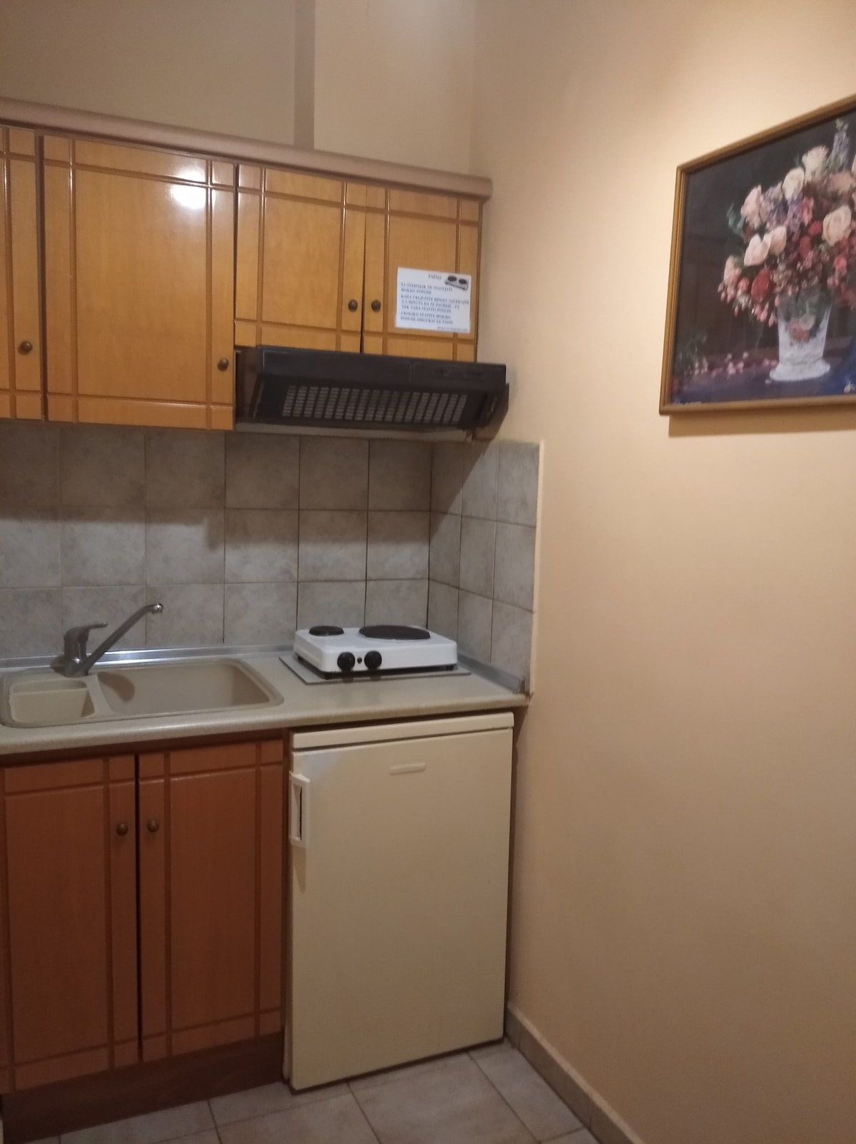 Este es un apartamento de espacio abierto que consta de una cama doble. Contiene un baño funcional y equipado. Está ubicado en la carretera principal del pueblo con todas las tiendas cercanas. El mar y los restaurantes están muy cerca y de fácil acceso.