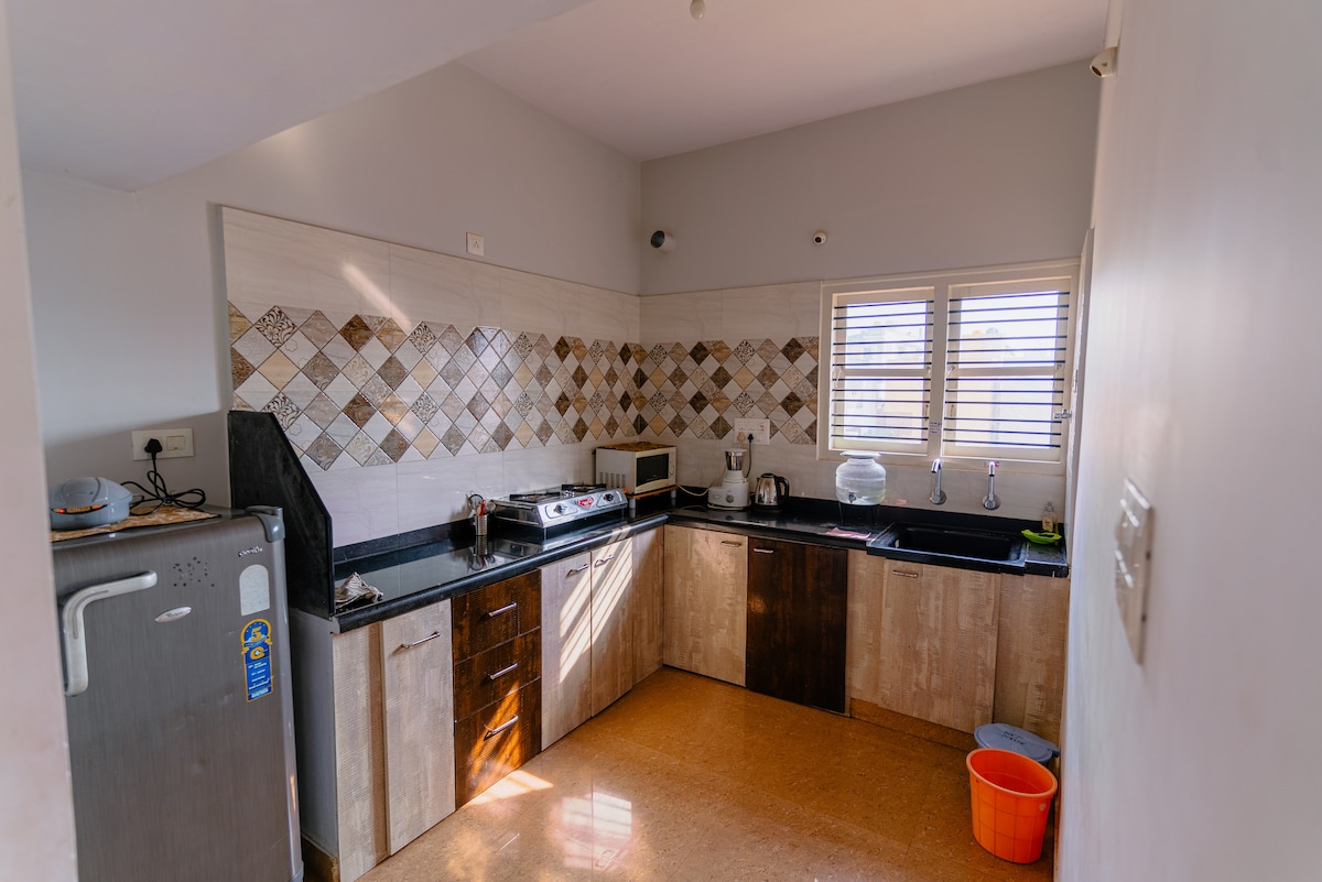 Tu hogar lejos de casa en Auroville ha sido decorado con buen gusto con un tema de Chettinad. Cada rincón de nuestra casa es Instagramworthy con interiores coloridos, arte kolam, decoración antigua y más. El 1BHK puede alojar cómodamente hasta 4 personas con una cama colgante y un sofá cama en la sala de estar. Si bien hay muchos restaurantes cerca, nuestra cocina ha sido cuidadosamente equipada para todas sus necesidades, ya sea para hacer una tortilla rápida o una comida india completa. Así que siéntate, relájate y bebe tu café.