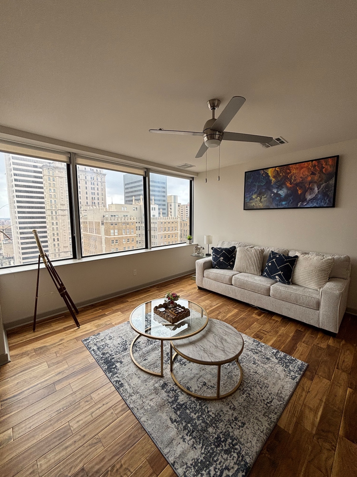 Experience the best of city living in our modern minimalist retreat! Pets Stay Free Enjoy breathtaking views of the city skyline from the comfort of our sleek and stylish high-rise apartment. Located in the heart of downtown, you'll be steps away from top attractions, trendy restaurants, and vibrant bars. Our apt. is the perfect haven for couples, solo travelers, and business professionals seeking a stylish and convenient base for their city adventures.