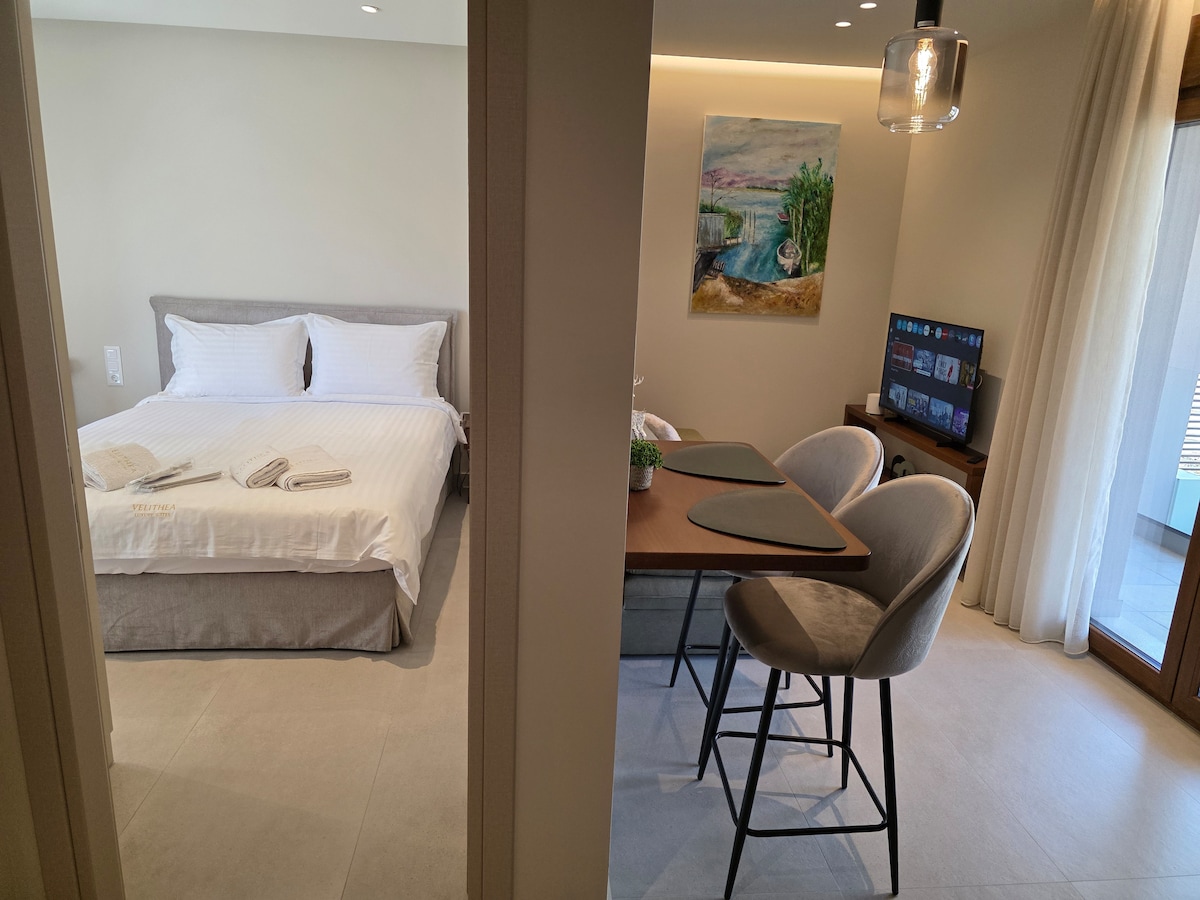 Disfrute de una experiencia de alojamiento en un estudio de un dormitorio totalmente equipado con balcón privado. El apartamento está situado en el centro de Agrinio (a 1 minuto a pie de la plaza principal) muy cerca de tiendas, restaurantes y lugares de ocio. Panadería y supermercado a 1 minuto a pie. También a 2 minutos se encuentra el aparcamiento municipal de Agrinio. Una ubicación ideal para los visitantes que desean explorar la ciudad y más.