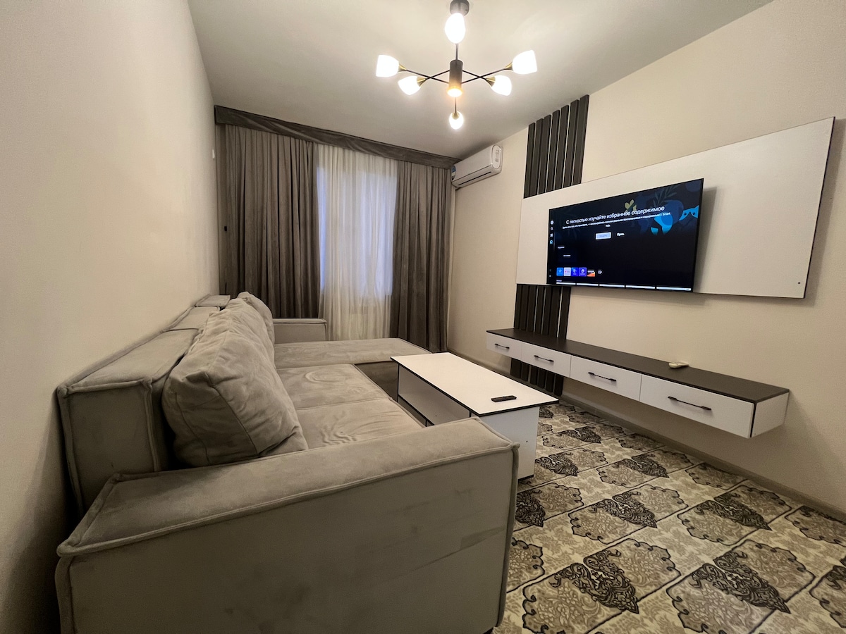 Apartamento acogedor y limpio en una ubicación muy conveniente para turistas y pasajeros de tránsito del aeropuerto: a 5 minutos del aeropuerto y de dos estaciones de tren. La estación de autobuses más cercana está a 100 metros. A 5 minutos en taxi del centro de la ciudad o a 10 minutos en transporte público. (A 5 minutos en autobús de la estación de metro “Taskentˮ) Área desarrollada alrededor del apartamento donde puedes encontrar cualquier cosa. Hay varias tiendas de comestibles grandes y pequeñas cerca, también una variedad de cafés, restaurantes, etc. Internet de alta velocidad ilimitado.