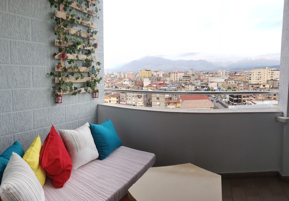 Acogedor apartamento de 1 dormitorio con balcón A @Shkodra Harmony