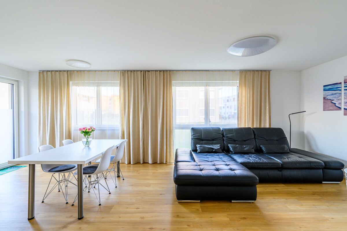 ¡Te damos la bienvenida a nuestro hermoso apartamento nuevo justo en el Rin! Disfruta de impresionantes vistas al río y un interior elegante y moderno diseñado para tu comodidad. El espacioso dormitorio con una cama de 1,60 m y un cómodo sofá cama proporciona el espacio perfecto para relajarse. Con la línea de tranvía 8 a solo 5 minutos a pie, tienes acceso directo a Basilea. El EuroAirport, el Museo Vitra, la Fundación Beyeler y muchas otras atracciones están a poca distancia. ¡Esperamos recibirte!