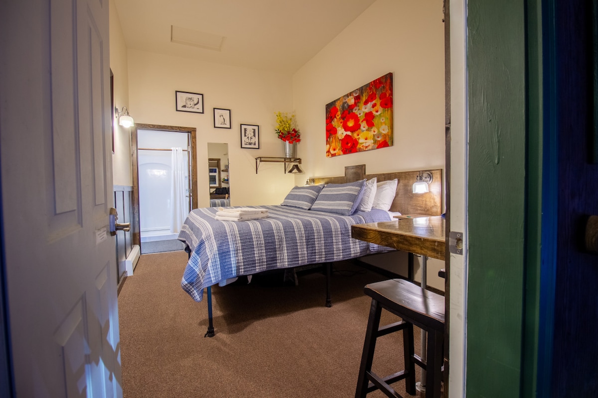 ¡Ubicación privilegiada en el centro histórico! Este encantador y acogedor alojamiento de 1 dormitorio se encuentra a solo 1 manzana de Resurrection Bay, el Sea Life Center y las tiendas y restaurantes del centro de la ciudad. Somos uno de los edificios históricos de Sewards y parte del recorrido histórico a pie. Este alquiler ha sido renovado para proporcionar comodidades modernas, pero mantuvimos parte del encanto histórico. Estilo estudio con cama tamaño queen, baño privado, sala de estar/dormitorio, cocina completa y zona exterior. Transporte gratuito y sendero para caminar a 1 manzana de distancia.