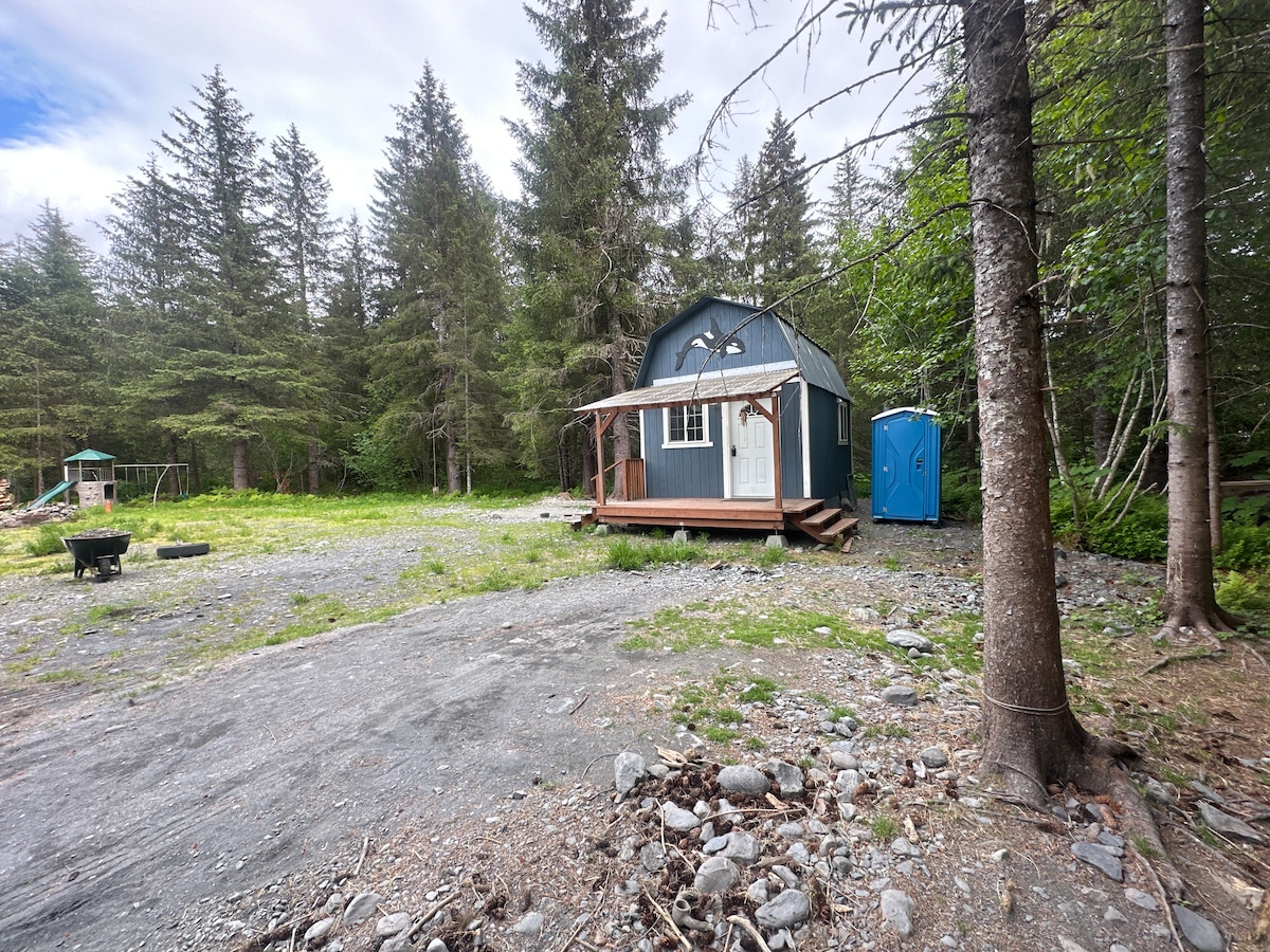 Quant pequeña cabaña enclavado lo suficientemente alto en la montaña para ver el Monte Alicia desde el porche delantero y todavía lo suficientemente cerca de la ciudad de Seward. Hay una cama queen y un futón. El asiento del amor también se reclina. Hay una fogata que puedes usar y algunas bicicletas cuelgan de la terraza de la casa principal. No dudes en usarlas. La casa está en la cima de la montaña, pero la carretera se puede escuchar desde la cabaña. La cama tamaño queen y el futón individual se encuentran en la misma habitación. Un huésped se quejó de que el área era demasiado pequeña.