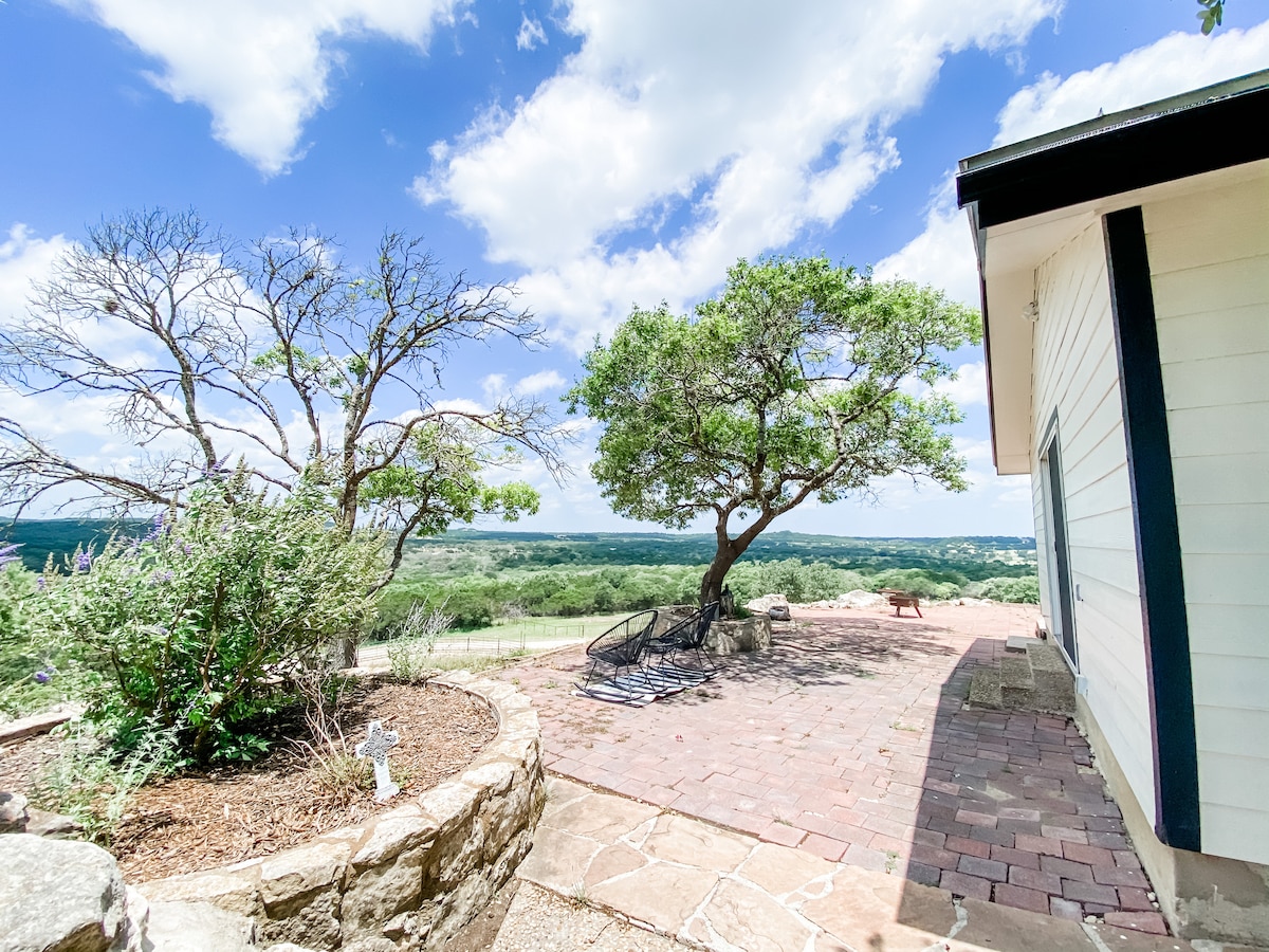 Te damos la bienvenida a Grandview Wildlife Ranch, un pintoresco refugio en la cima de una colina en 57 acres privados. GWR es tu escapada tranquila en Texas Hill Country. Este rancho privado es ideal para parejas que desean relajarse con vistas panorámicas, un encantador interior rústico y comodidades bien pensadas. El rancho es tranquilo y acogedor, y ofrece un refugio sin igual. Sumérgete en nuestra lujosa bañera de hidromasaje, refréscate en la piscina estilo vaquero, disfruta de la zona de cielo nocturno para observar las estrellas, practica senderismo y explora la propiedad en nuestro vehículo de alquiler Kawasaki Mule.
