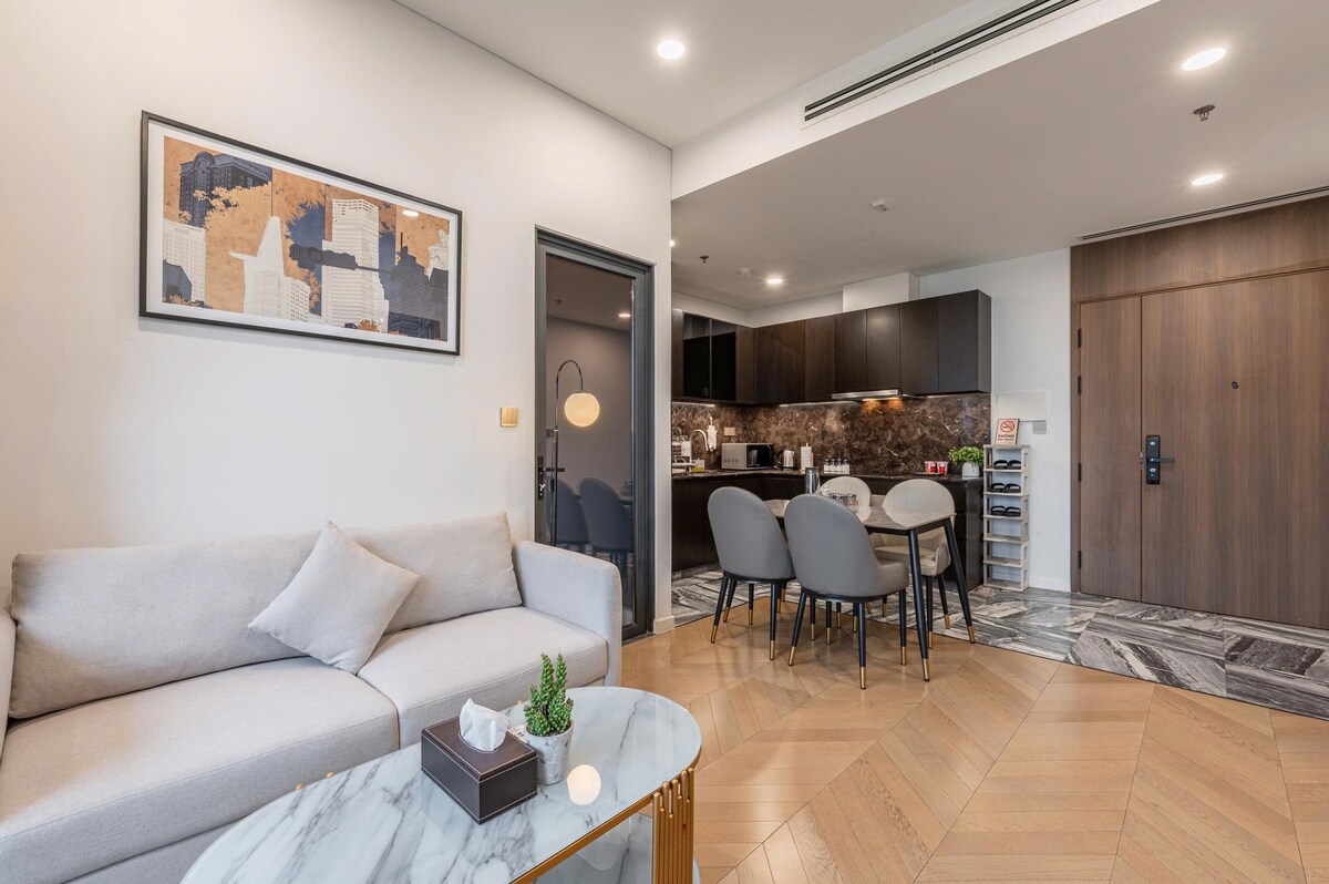 Experimenta NU Lumiere 2BR, un moderno apartamento de 2 dormitorios en An Phú, Thảo Điền. Cada unidad cuenta con un amplio balcón con vistas al río, interiores elegantes y luz natural. Los huéspedes disfrutan de acceso a una de las piscinas más hermosas de Saigón, un gimnasio completo y seguridad las 24 horas. A solo 15 minutos del centro de la ciudad, con acceso directo a la línea 1 del metro para facilitar las conexiones en toda la ciudad, ideal para viajes de negocios o estancias relajantes.